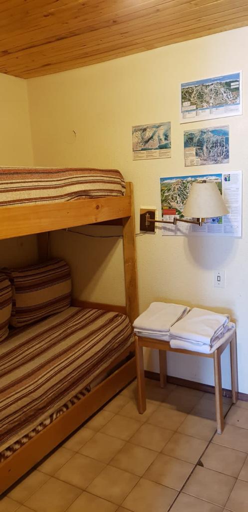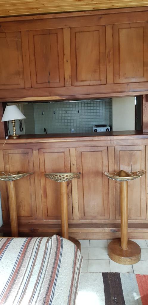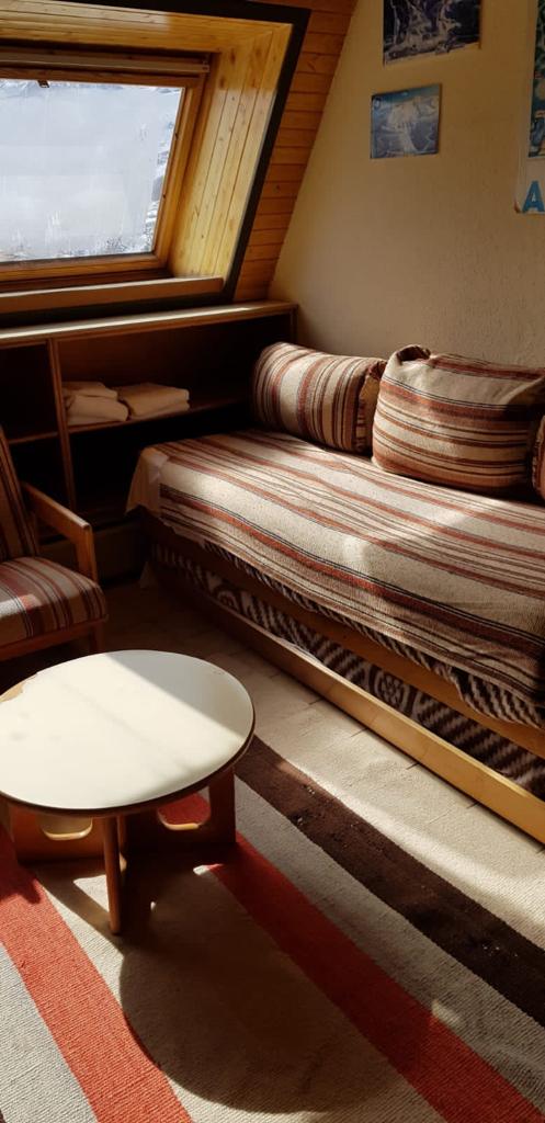 Estudio: tiene 2 ambientes generosos, un pasillo largo con mucho placard de un lado y del otro lado tiene un baño compartimentado. El primer ambiente cuenta con una cama cucheta de 2 pisos. En el segundo ambiente, seria el living/comedor que tiene un sillón cama del cual se saca una cama mas de abajo. En la cocina el equipamiento es el siguiente: los electrodomésticos son nuevos, los compramos el año pasado (horno eléctrico, pava, tostadora). También cuenta con las típicas hornallas de toda la vida. Tiene televisión y servicio de Directv., internet por fibra óptica, Calefacción muy buena. Servicios de mucama, cambio de sabanas y toallas, sauna. Guarda esquíes. El depto se encuentra a 20 metros de la base. Primera fila con una vista espectacular.