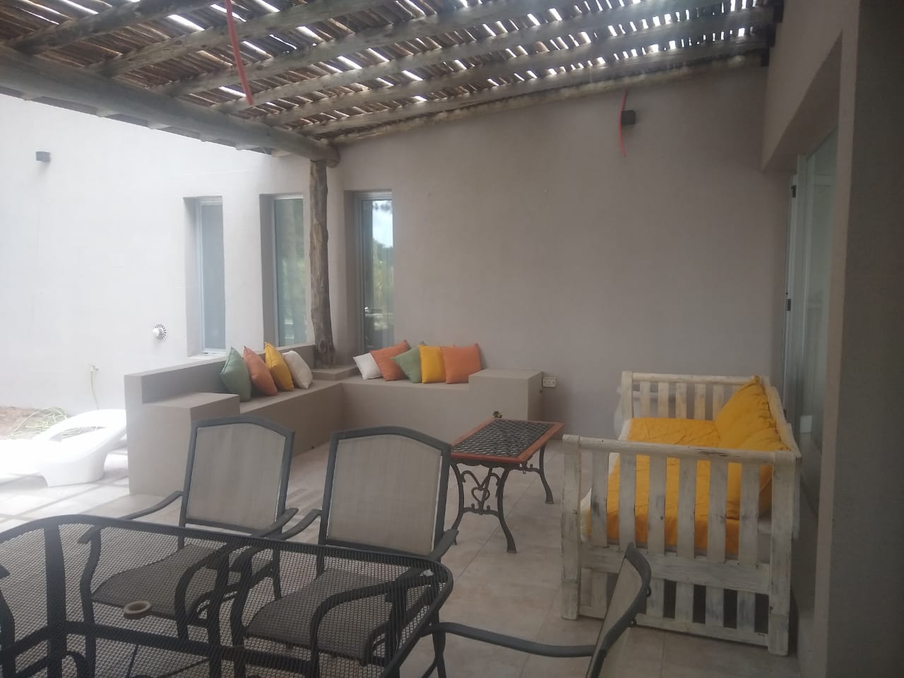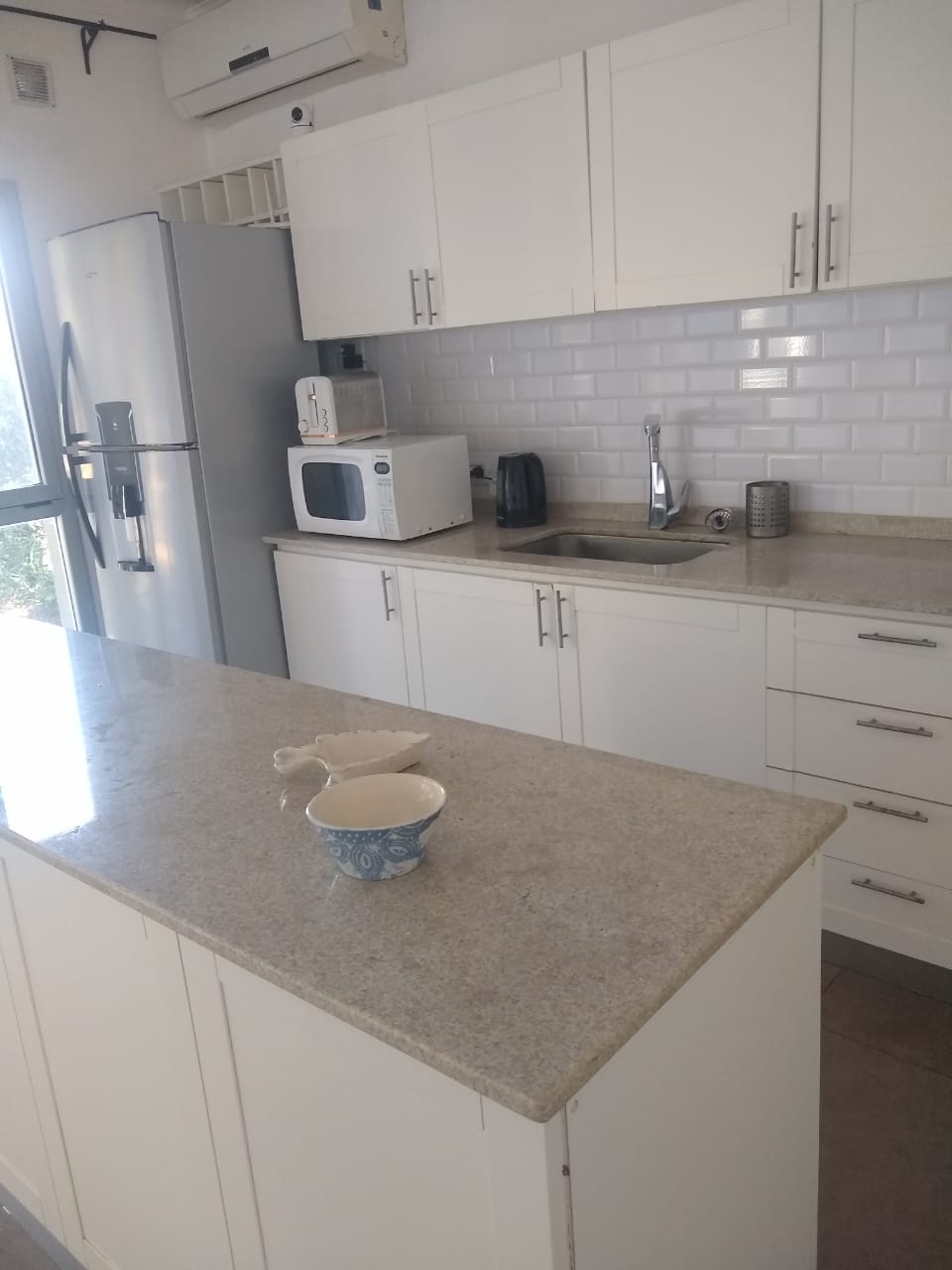 Gran cocina con lavavajillas y living comedor de concepto abierto, en la parte trasera exterior galería con parrilla y juego de comedor.