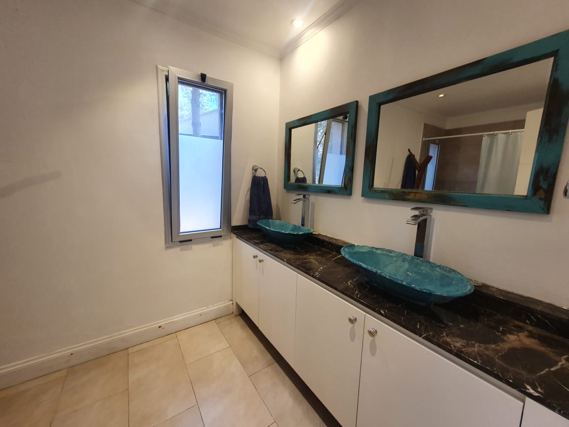 Dormitorio principal con cama matrimonial en suite y vestidor, segundo dormitorio con dos camas individuales y tercer dormitorio matrimonial, dos baños completos y toilete.