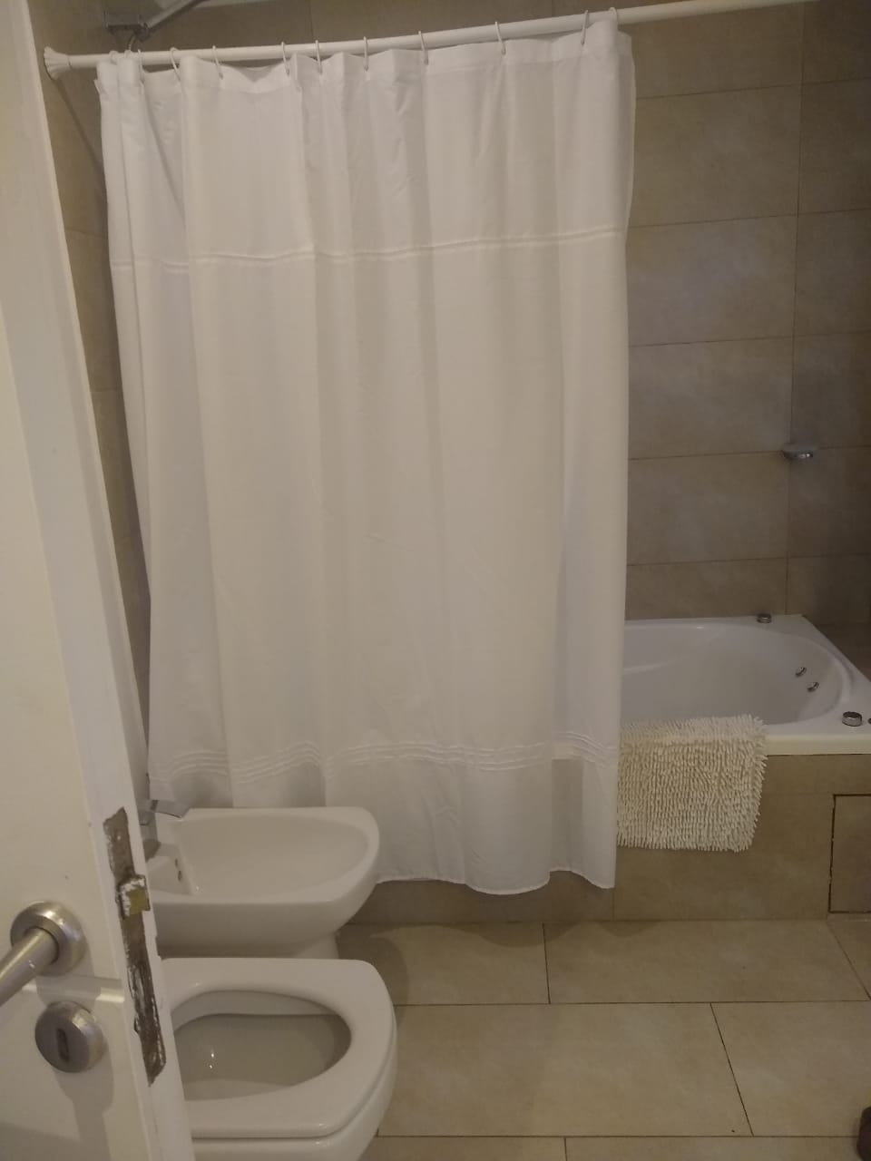 Ducha exterior, lavadero con lavarropas y secarropas.
