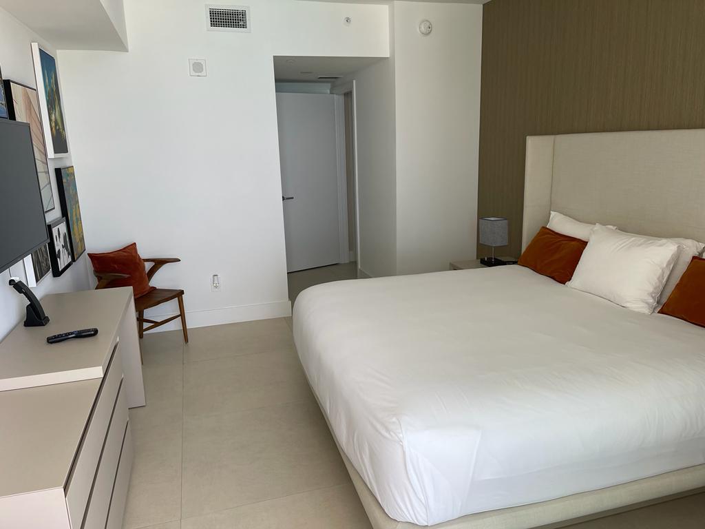 Este departamento cuenta con dos baños y dos habitaciones. Una de ellas con una cama queen y la otra con dos camas queen.