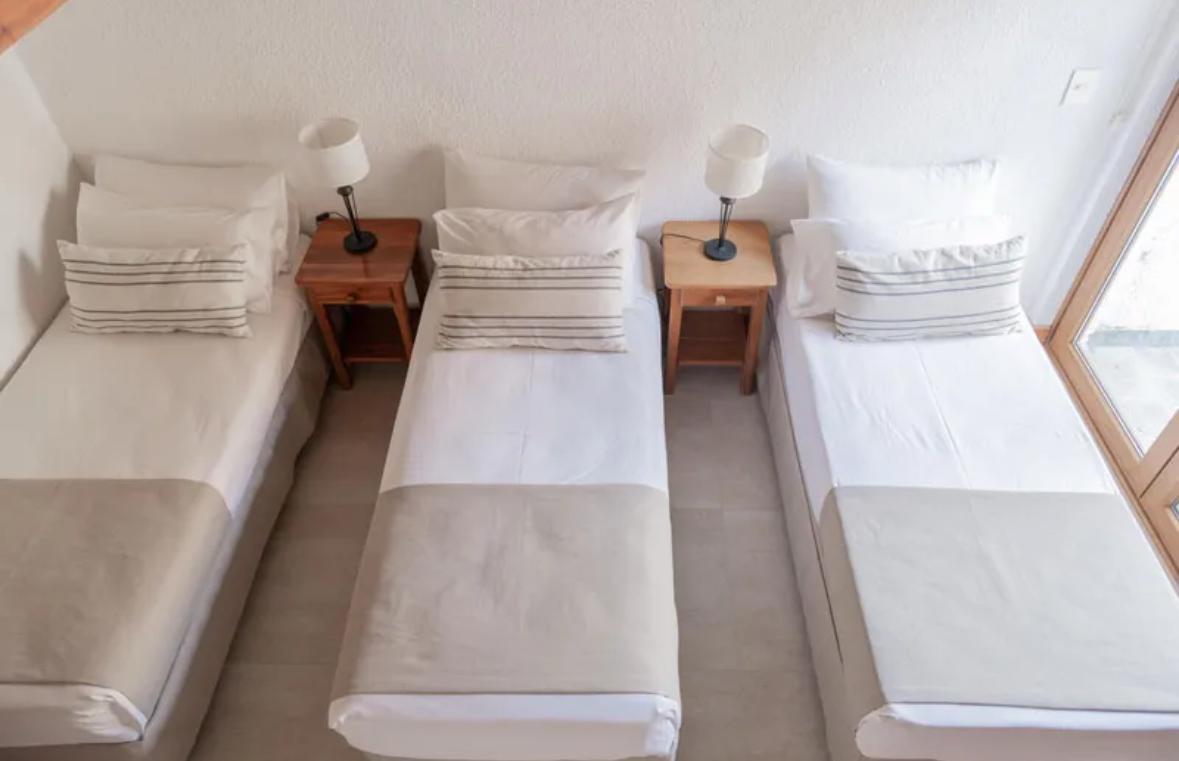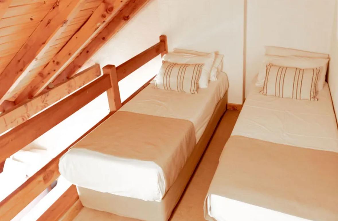 Plazas: 9. Habitación principal con sommier 1.80 x 1.90 + habitación con altillo con 5 camas single de 0.80 x 1.90 + 2 sillones cama.