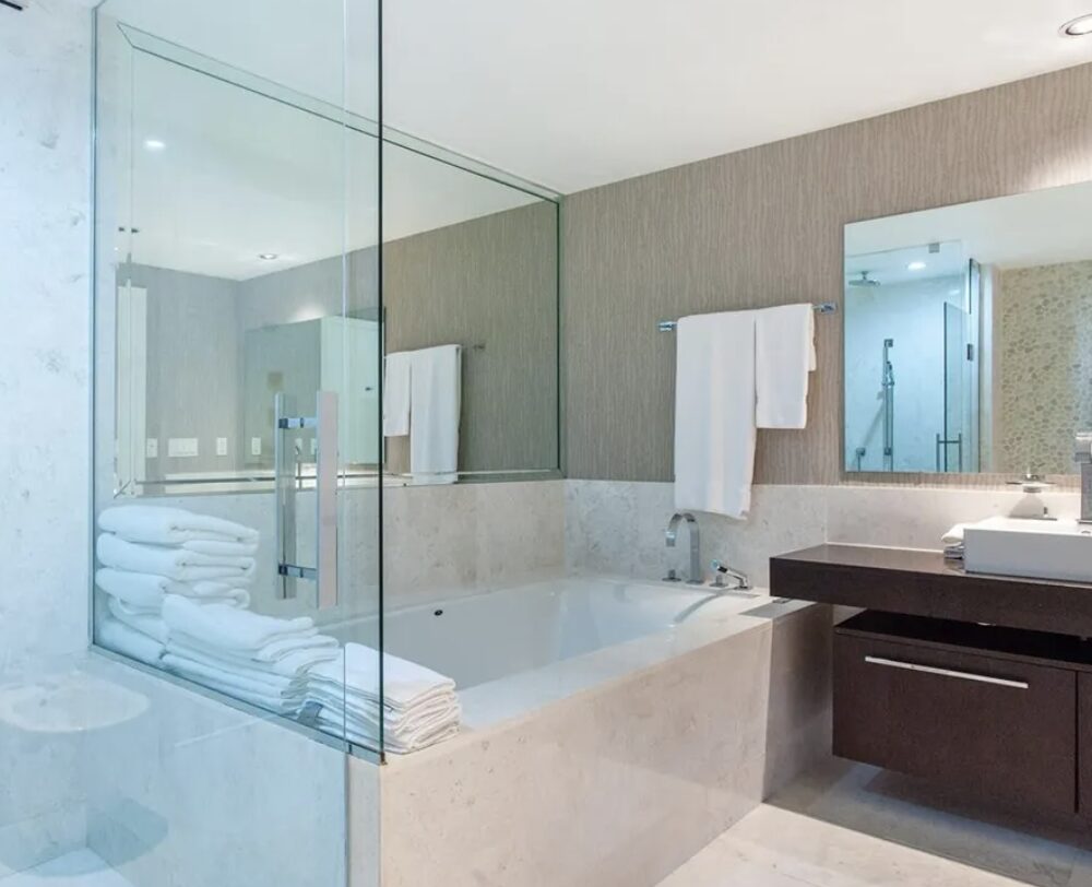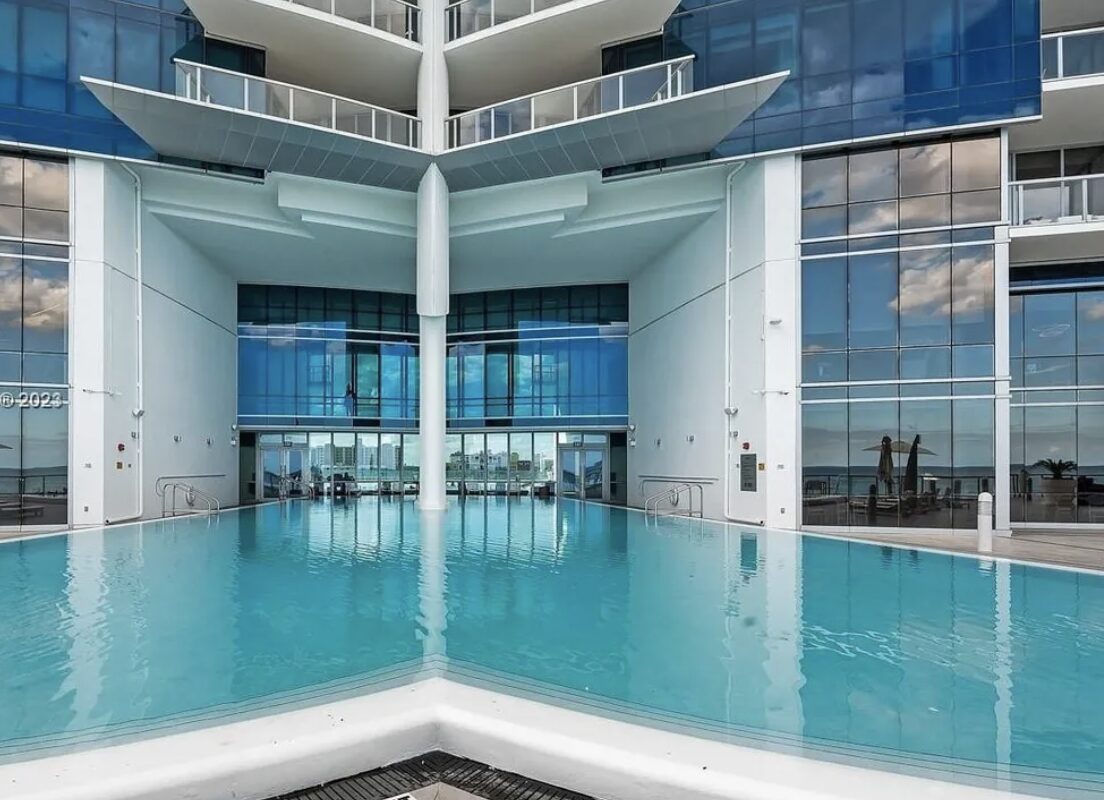 Jade Ocean es una torre de cristal transparente con 52 pisos, cuenta con una piscina de borde infinito que fluye a través de todo el edificio, más una cascada alta en la entrada de la avenida Collins,.