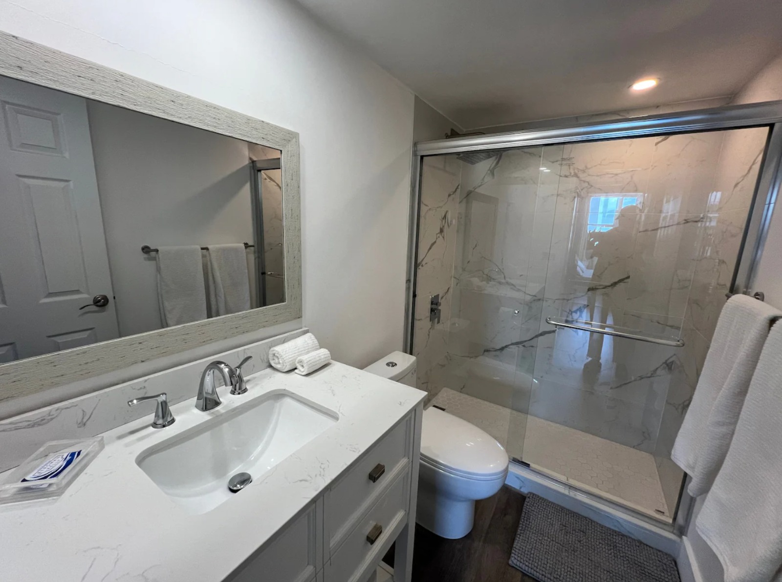 – Primer dormitorio en suite con 1 cama King size, baño con ducha, y VISTAS A LA BAHIA.