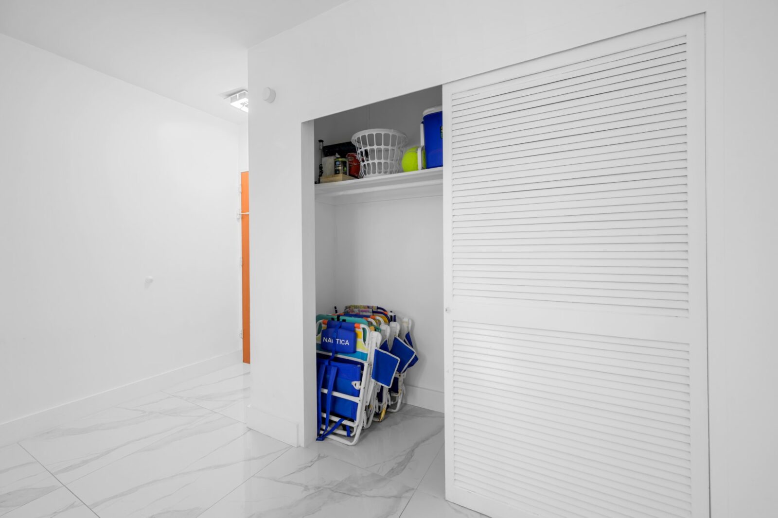 En el closet del living se ubican todos los accesorios de playa necesarios – Reposeras, Sombrillas y Heladerita.