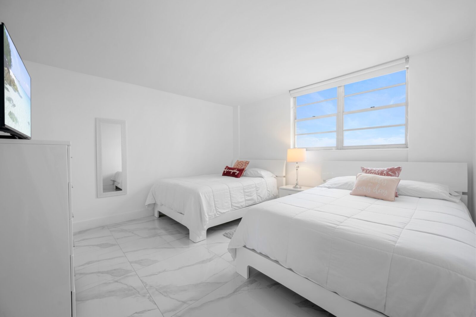 La habitación cuenta con 2 camas queen size, smart TV 32” y vestidor donde se encuentra toda la ropa de cama y toallas para baño y playa.