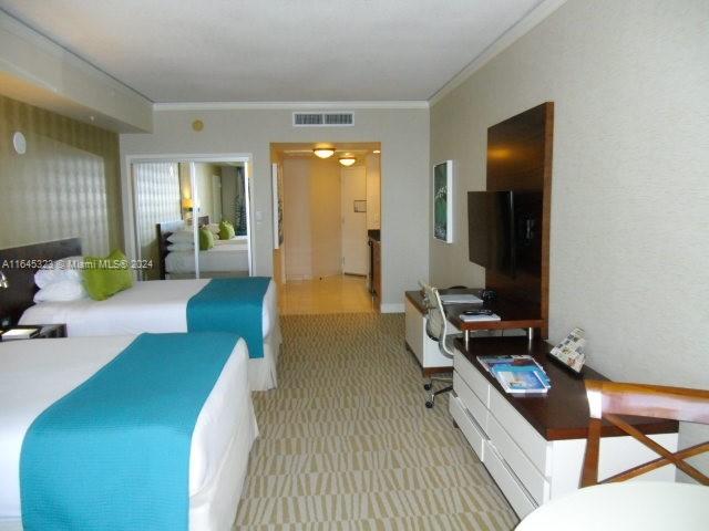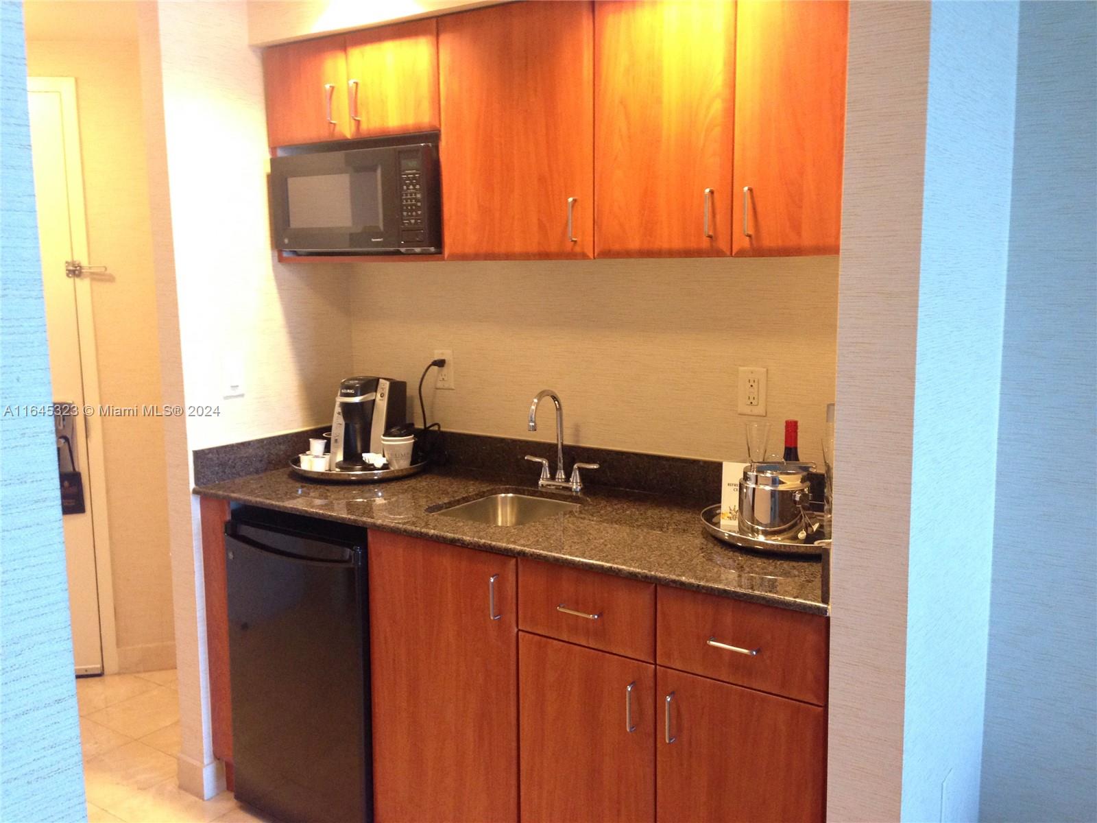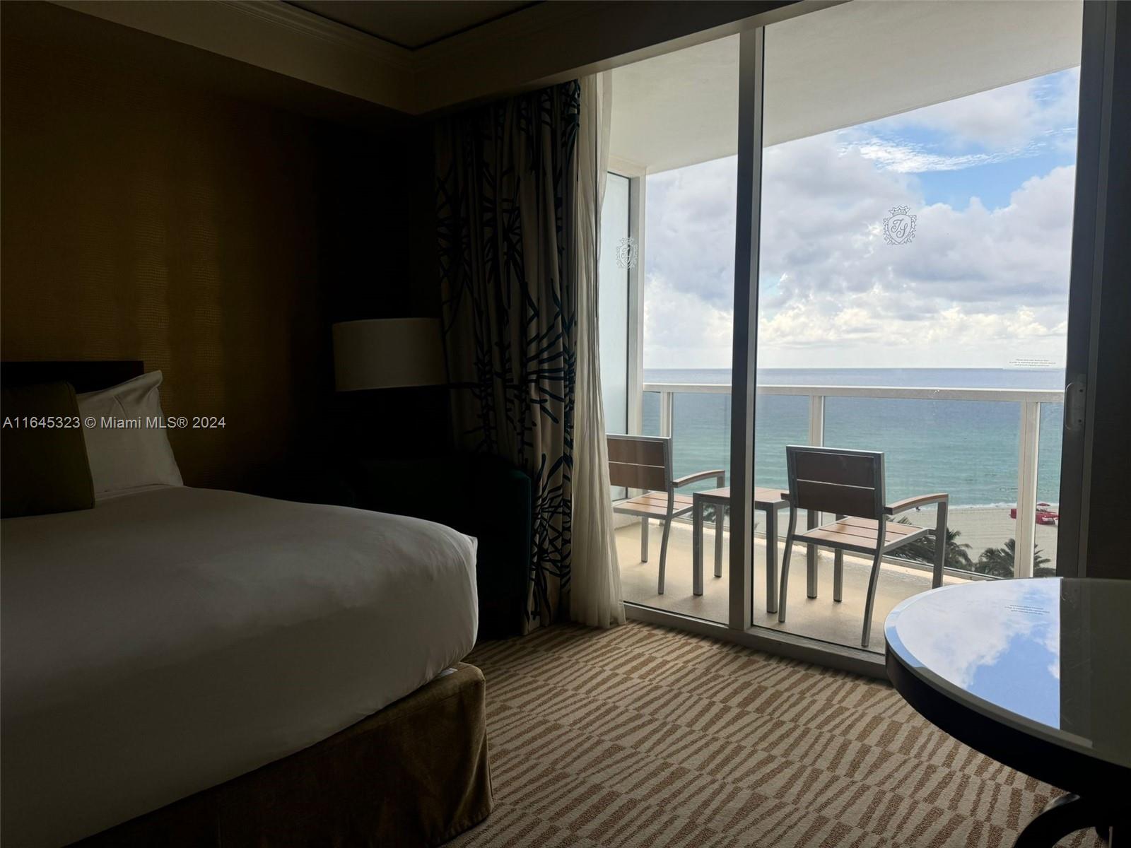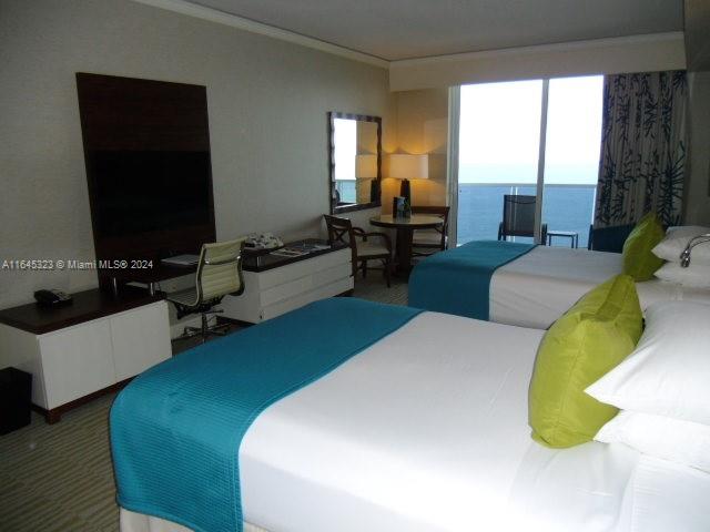 Estudio con vista al mar en Condo-hotel. 2 camas queen, mesa de comedor, cocineta, completamente amueblada por el hotel.
