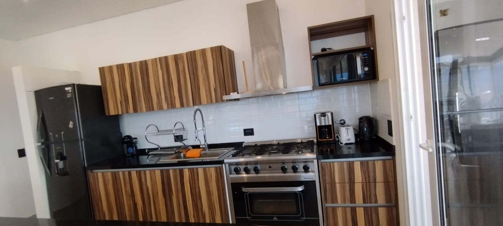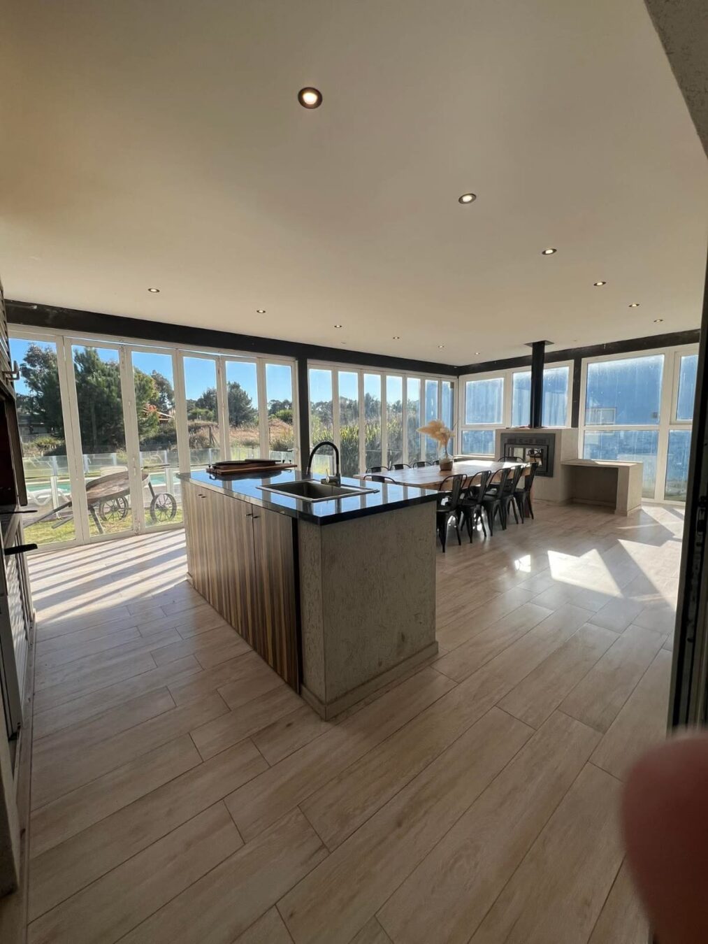 Galería cerrada con vidrio tipo libro ,con estufa lepen de embutir.