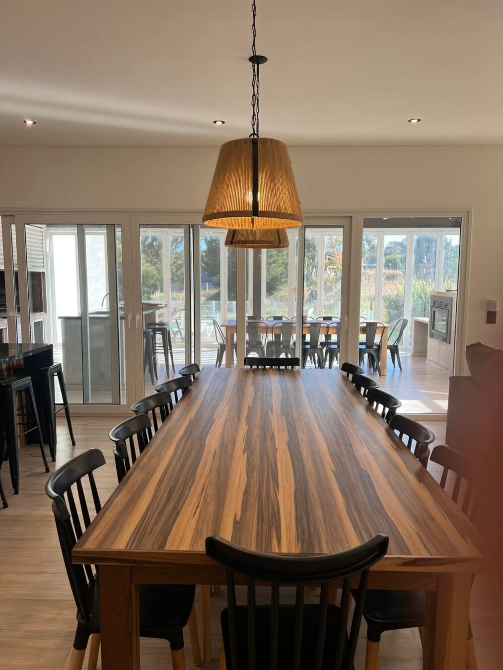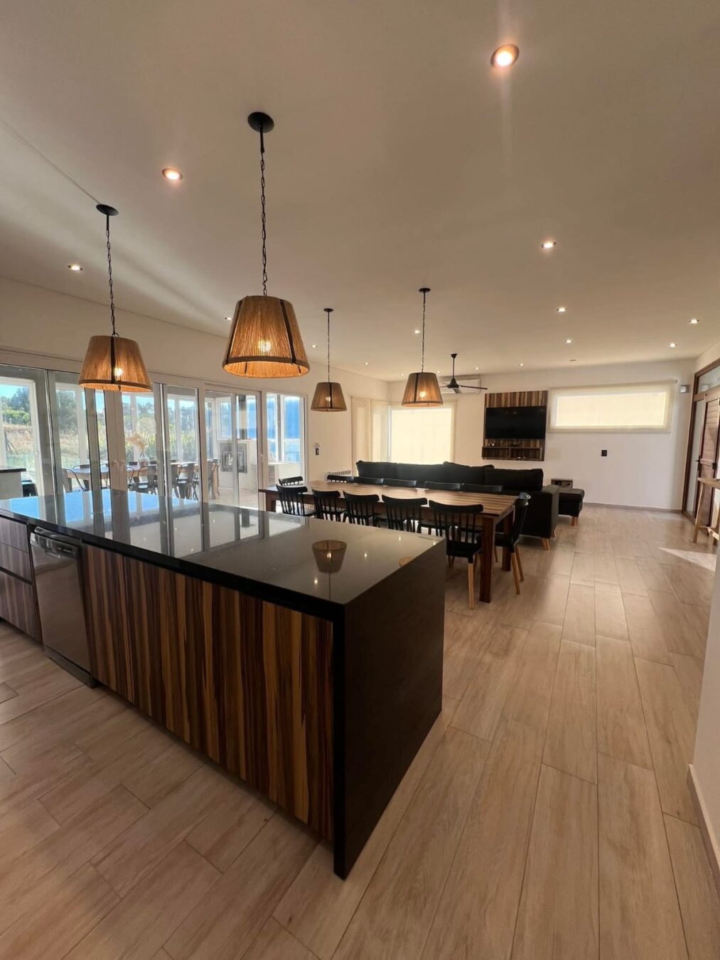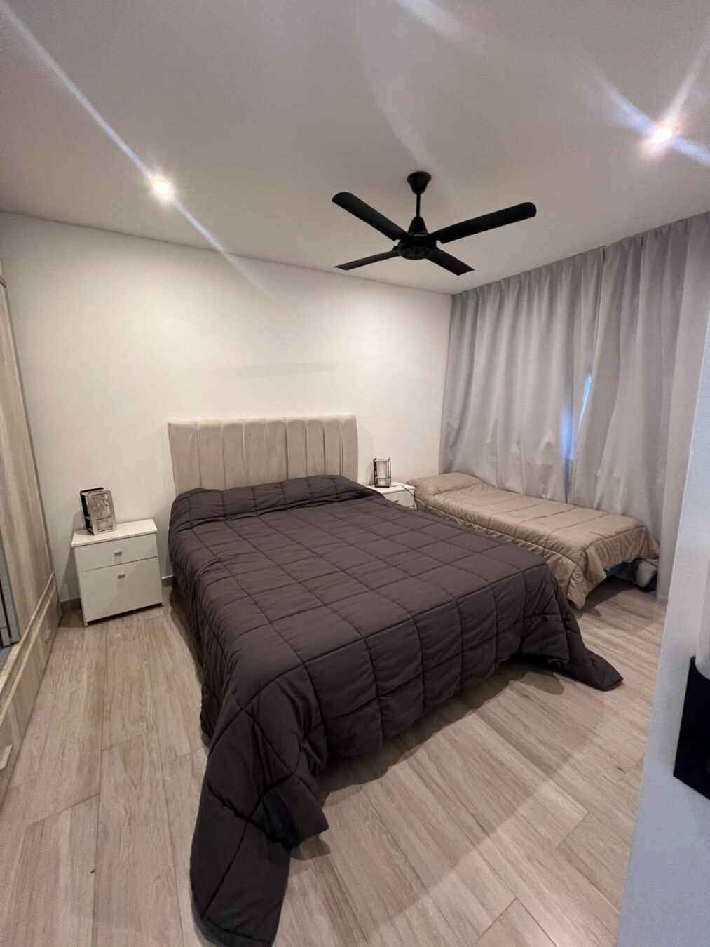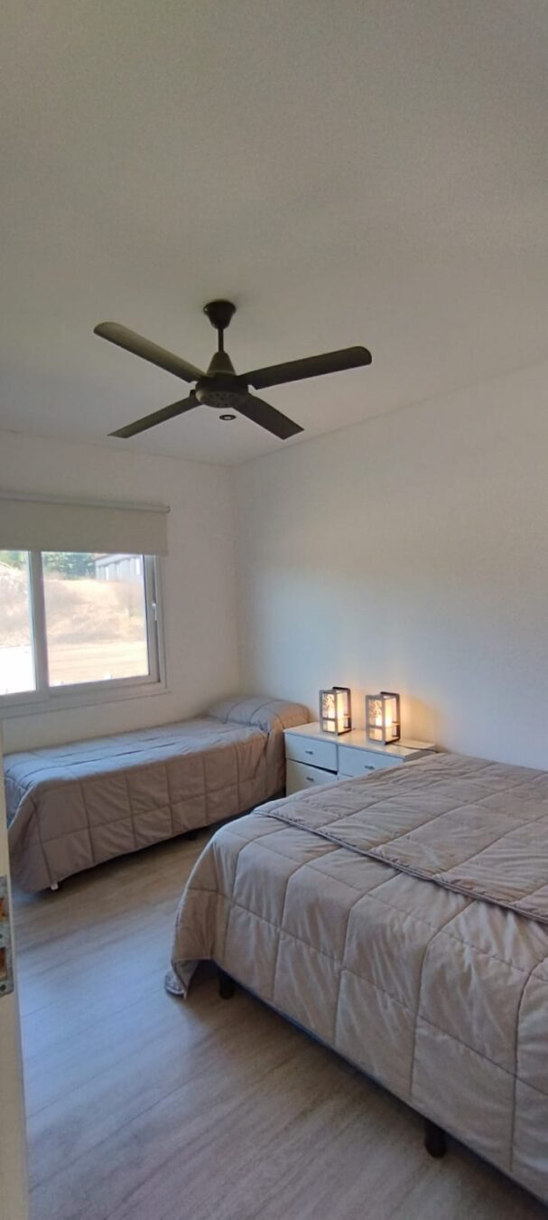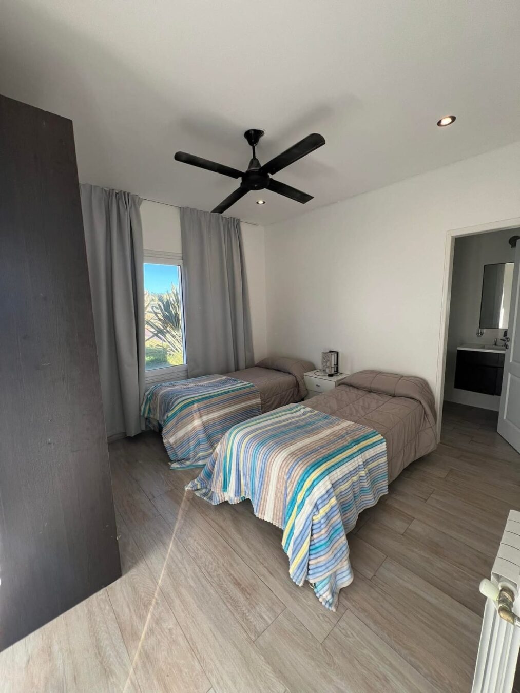 Un dormitorio matrimonial y single, segundo dormitorio matrimonial, los otros tres dormitorios con camas single.