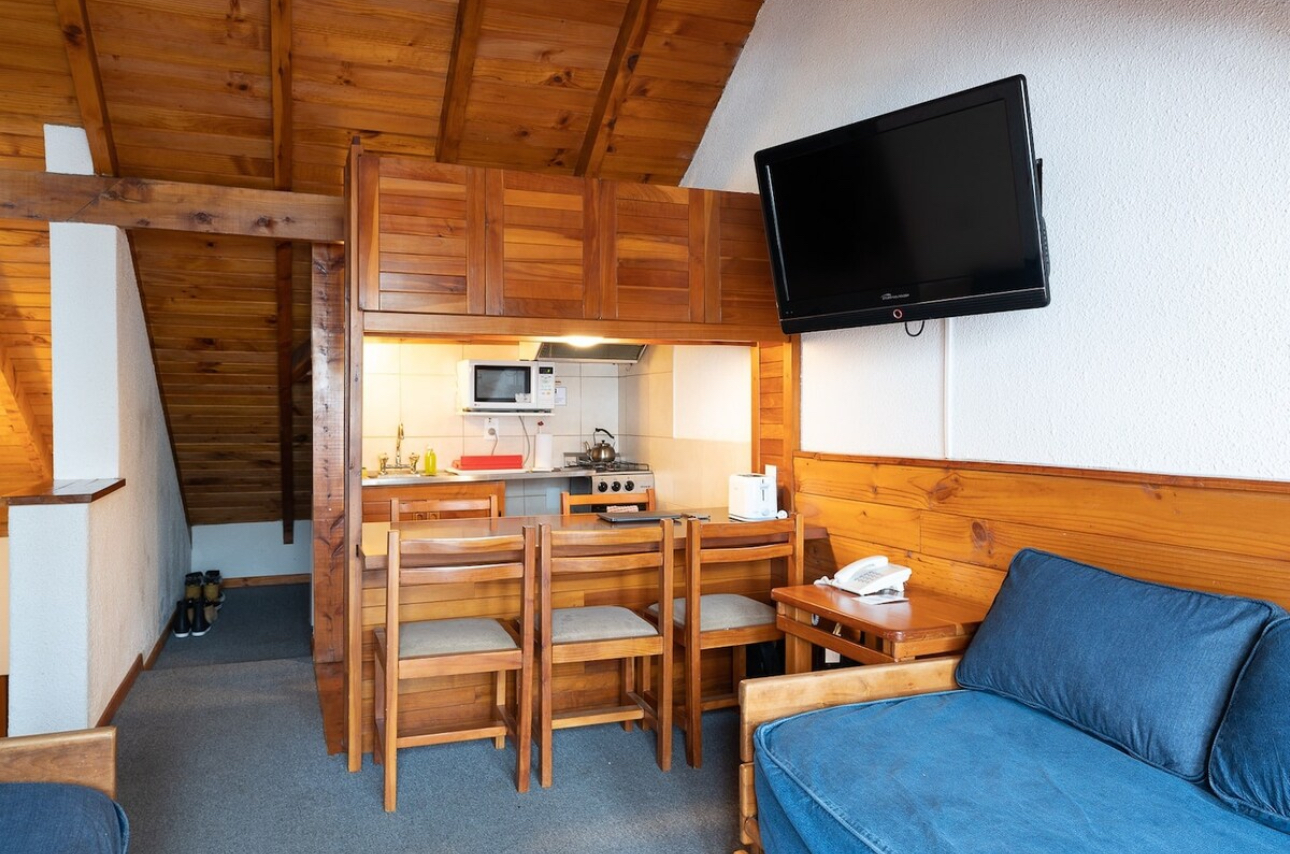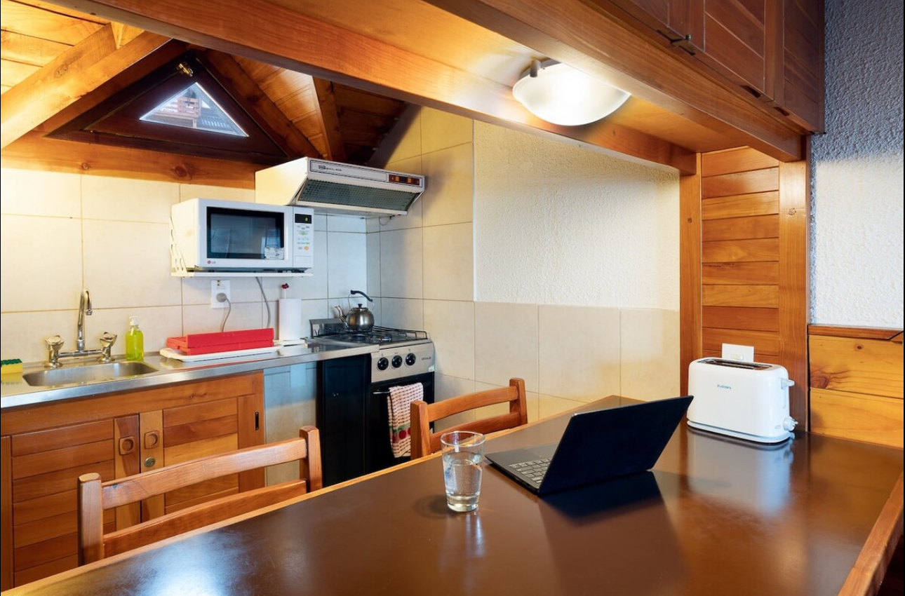 El departamento cuenta con 2 sofá camas y cama adicional, comedor, cocina americana equipada con cocina con horno a gas, microondas, heladera y vajilla completa. Dispone de un baño completo. Posee calefacción, teléfono y televisión LCD por cable.