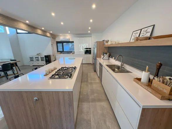 La cocina cuenta con una gran isla desayunador. Lavavajillas microondas, estación de café y parrilla a gas.