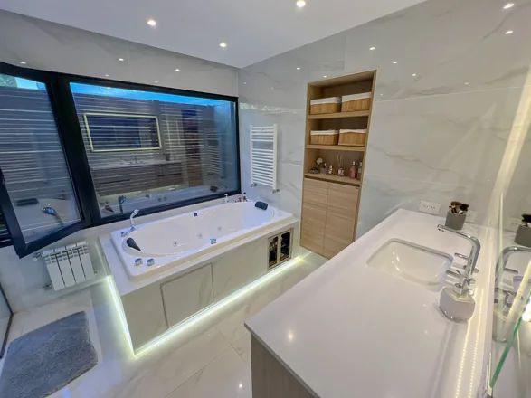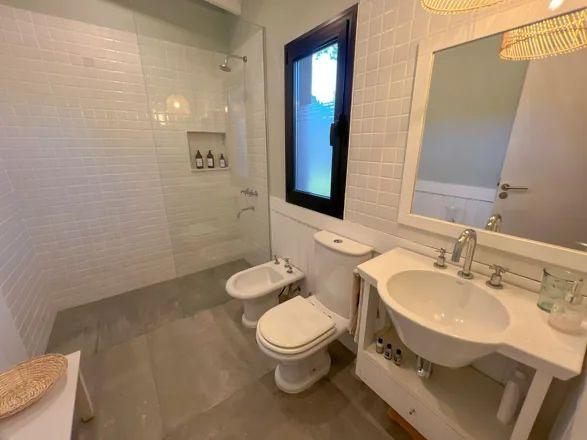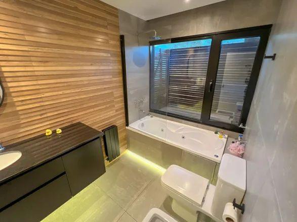 Tres baños completos en suite, dos con hidromasaje uno con ducha y un toilette en la entrada.