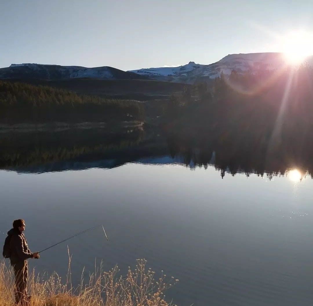 Pescan desde la costa, en lugar habilitado todo el año. Con un paisaje imponente buscarán activamente las Truchas Arcoíris y Marrón.