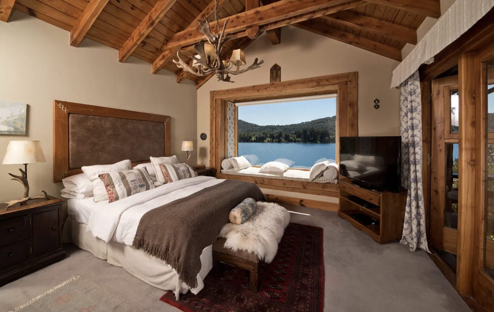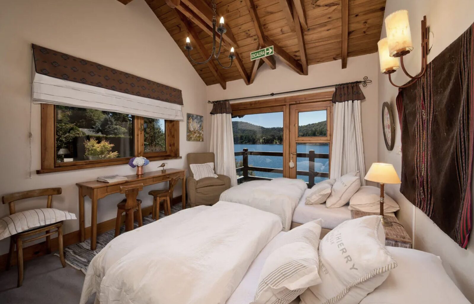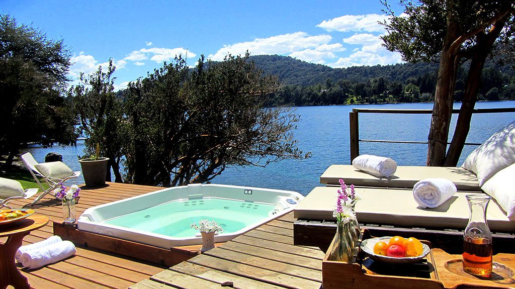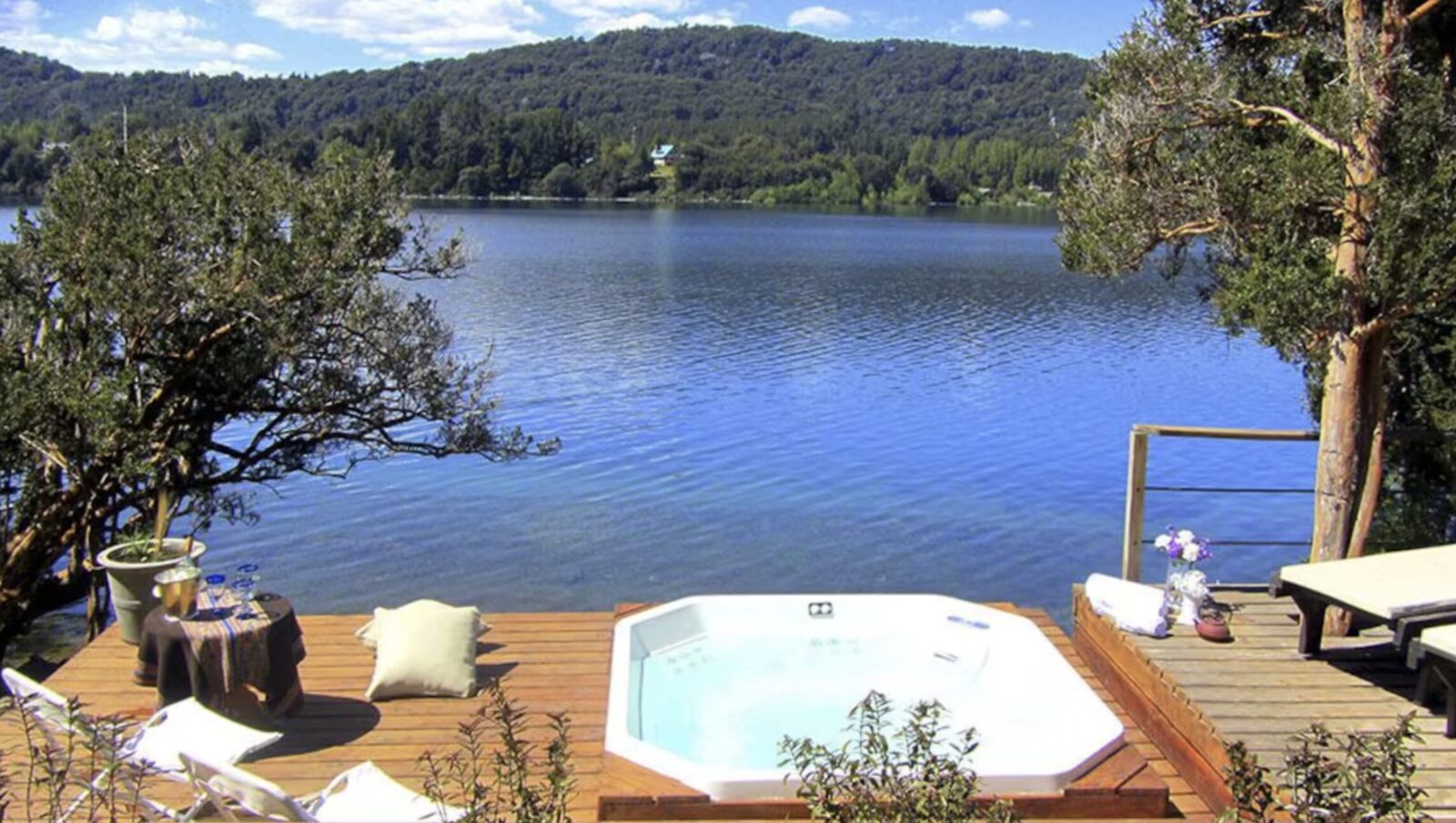 Ubicada en la zona de campanario , km 17 300 sobre Nahuel Huapi , cuenta con muelle privado , y jacuzzi. Playa exclusiva , dentro de una bahia reparada del viento.