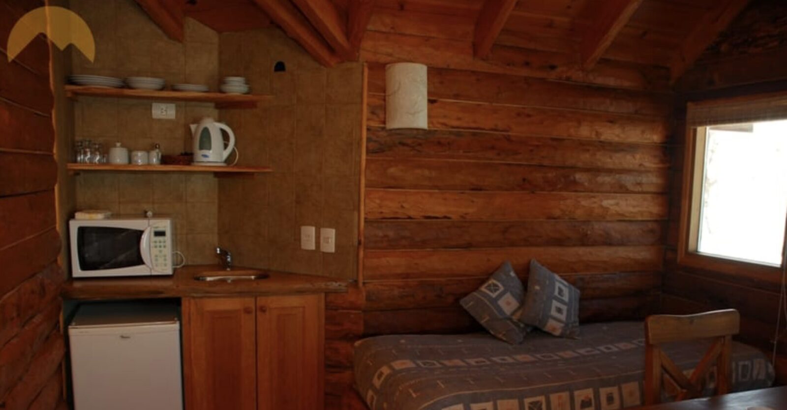 El primer DORMI esta ubicado dentro del edificio principal donde funciona el Club House dónde hay livings con tv & hogar a leña. Tiene dormitorio matrimonial con tv baño completo y segundo ambiente con cuchetas y una kitchinette que tiene microondas frigobar y pava eléctrica únicamente. Cuenta con vista al jardín.