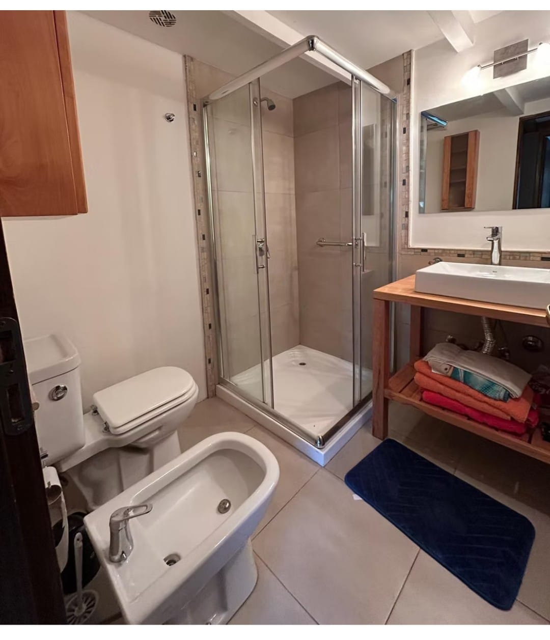 – Habitación 2: Cama de 1 plaza con carro que se despliega a la misma altura, Baño – Ducha con mampara, bidet y secador de pelo