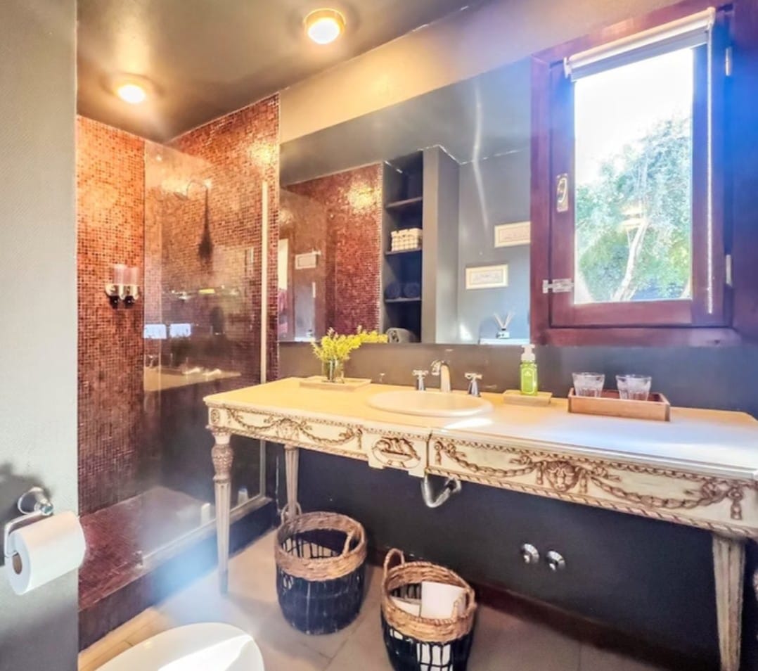 – 3 dormitorios con cama matrimonial (uno de los dormitorios tiene baño en suite, con ducha escocesa y jacuzzi)
