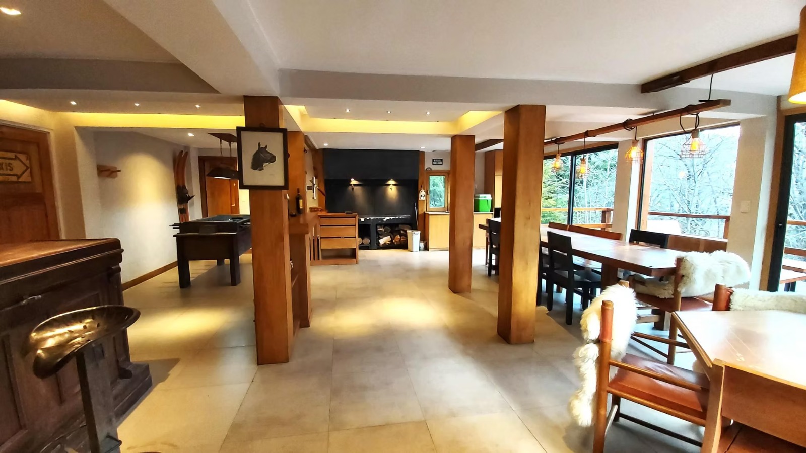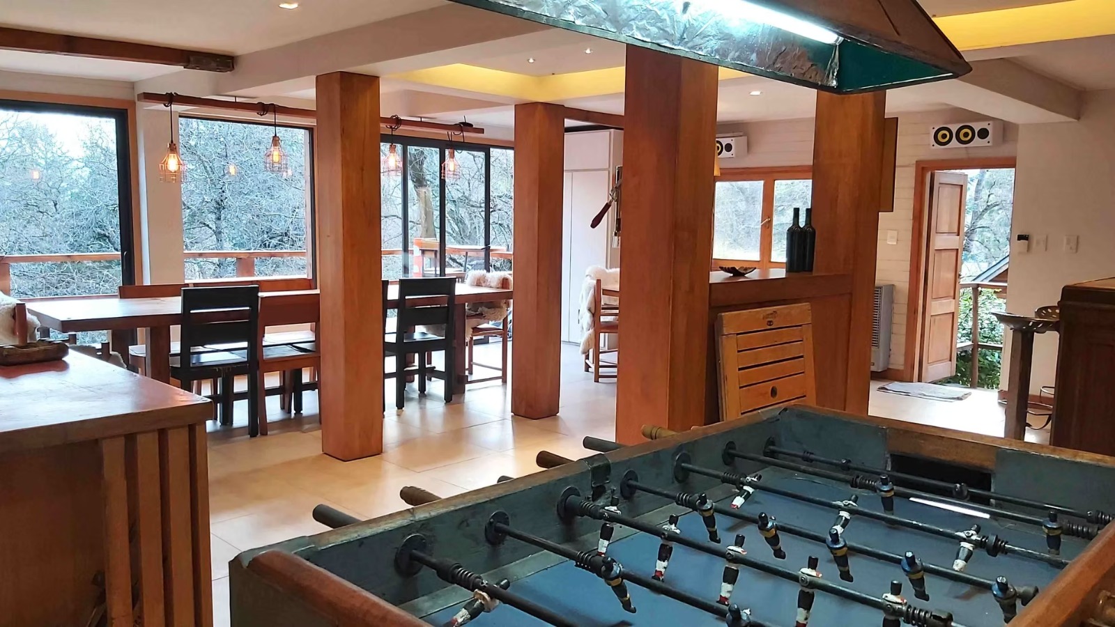 Ø Amplio quincho amplio con parrilla, zona de bar, metegol, mesa para 8 personas, deck (balcón) con juego de jardín. Toilette.