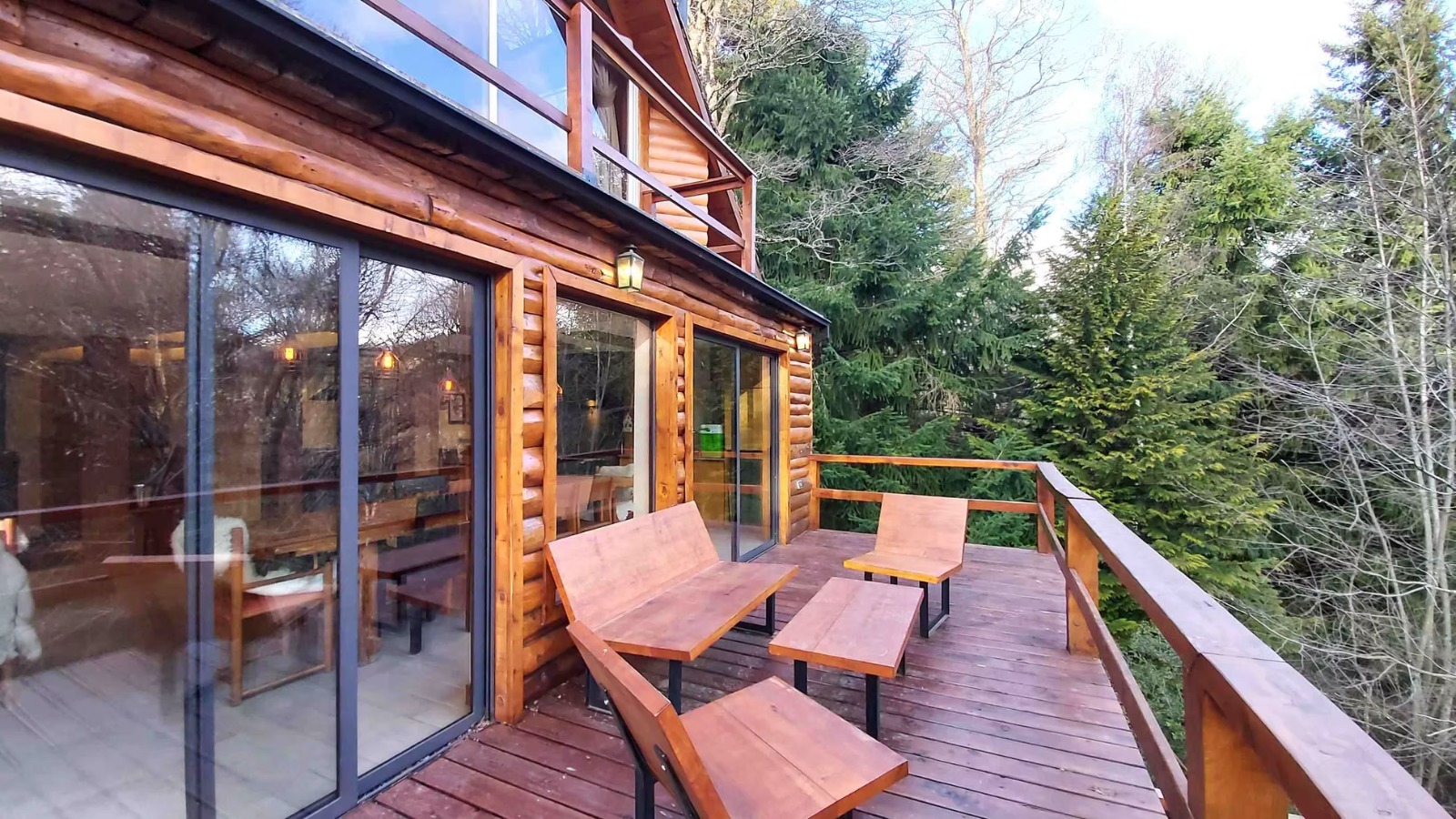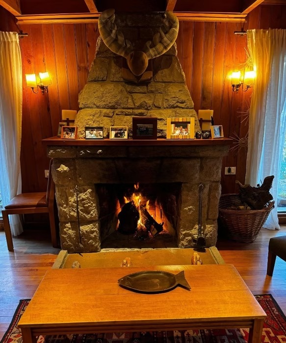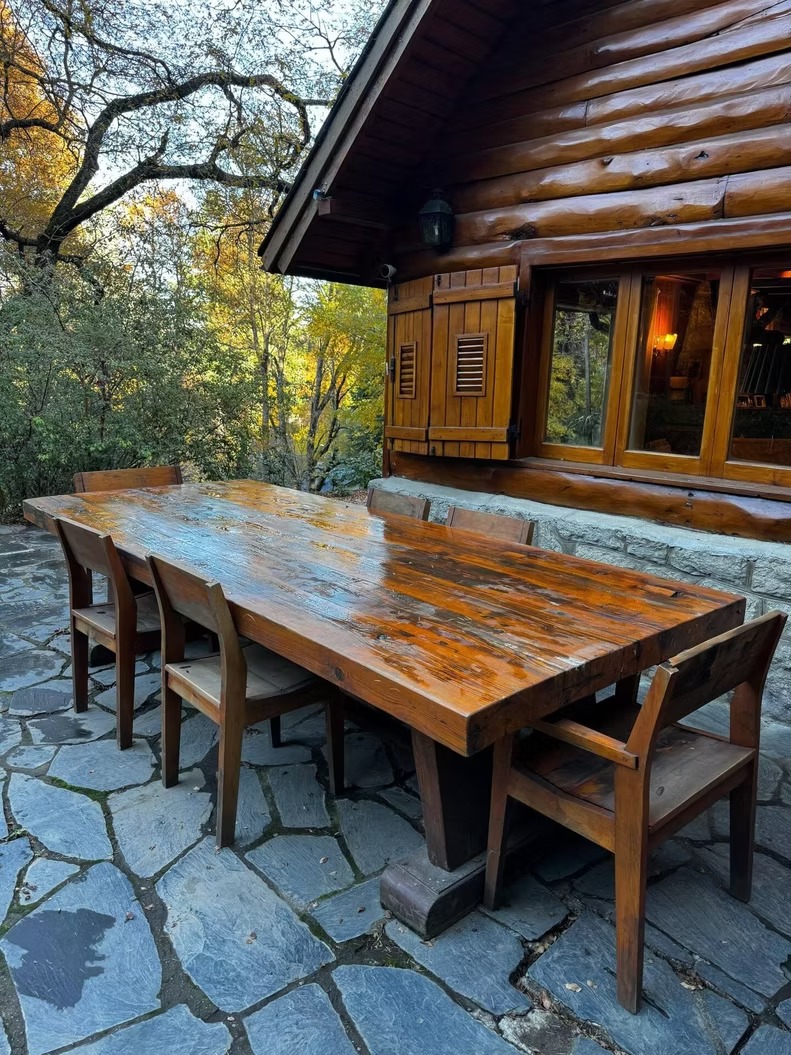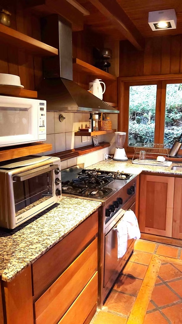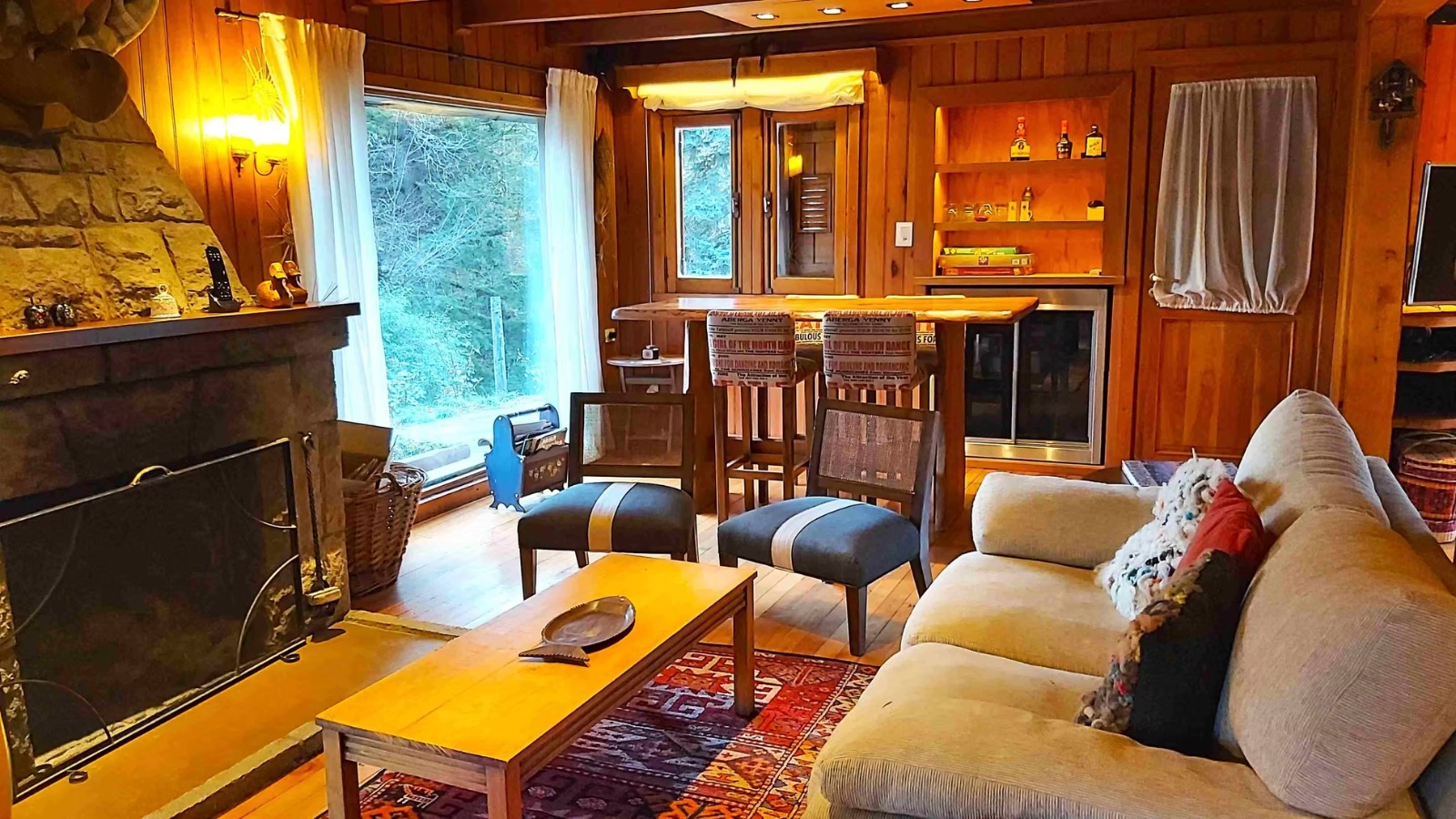 Ø Cabaña con habitación matrimonial, espaciosa, con amplios ventanales, escritorio y hogar a leña, baño en suite con hidromasaje y vestidor. Aire acondicionado.