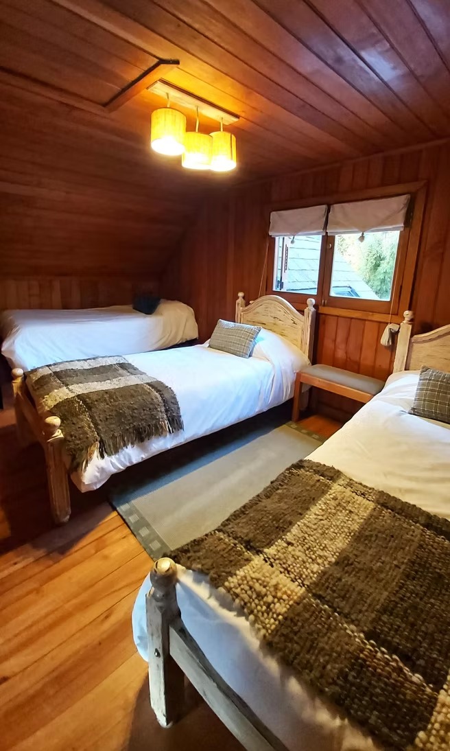 – Planta alta: Una habitación con cama matrimonial. Segunda habitación con tres camas singles. Baño completo con hidromasaje.