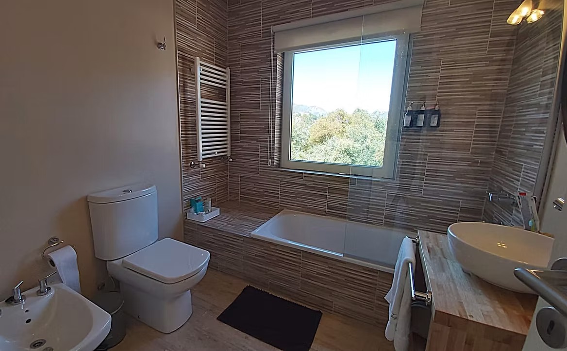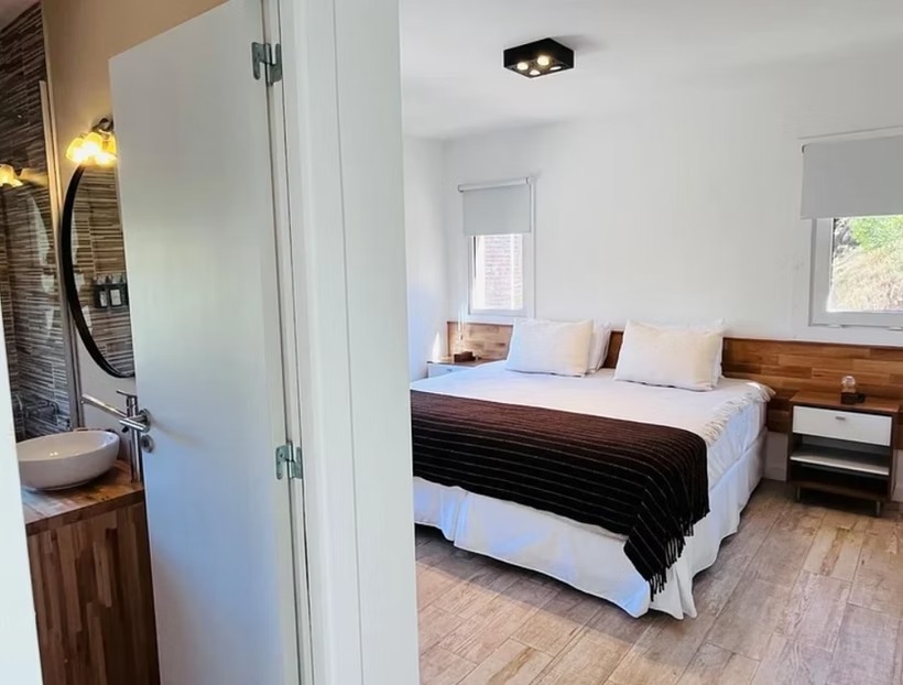 ✔️ Habitación principal con cama matrimonial Sommier extra King (opcional dos camas singles) y baño completo en suite.