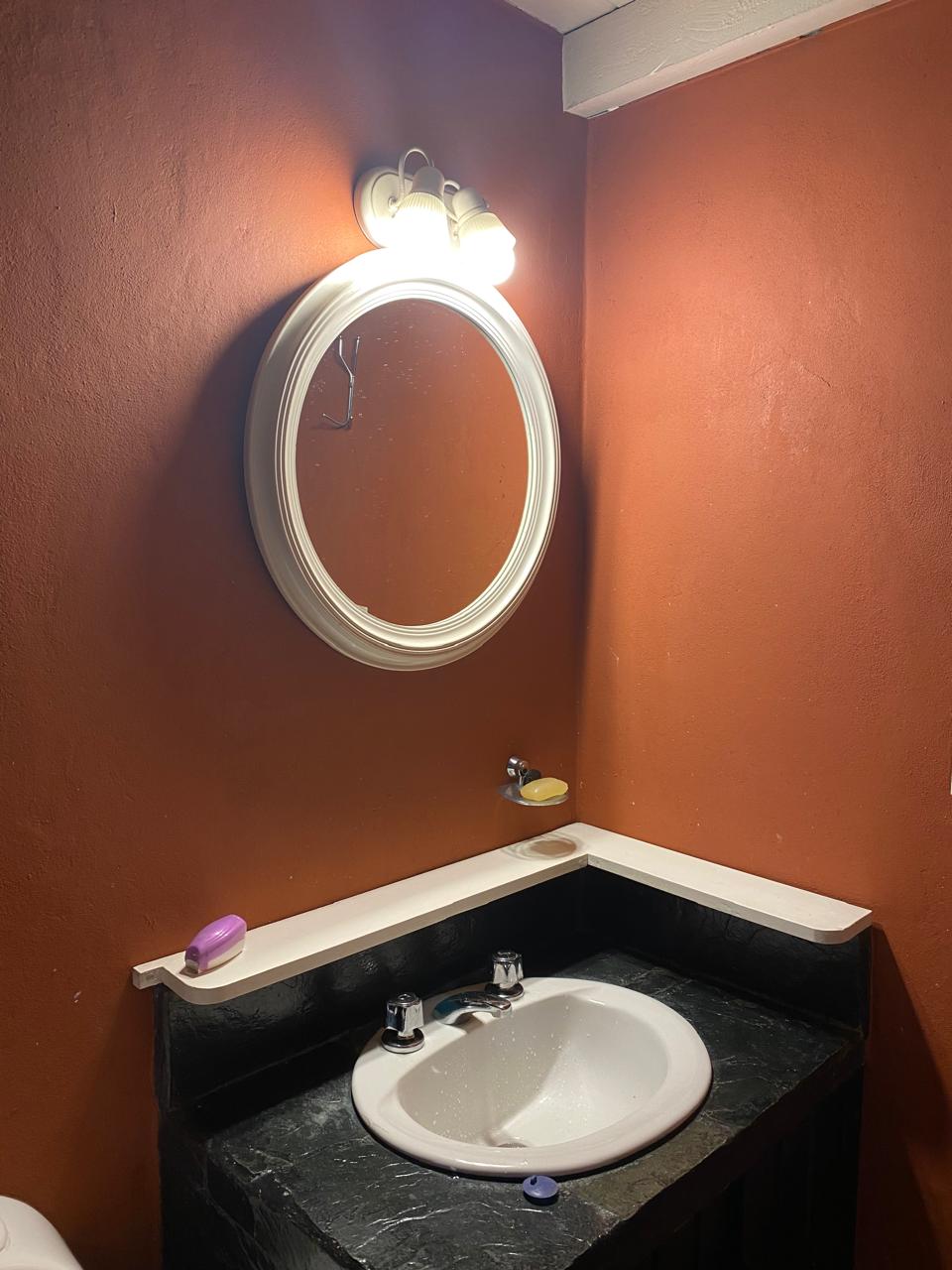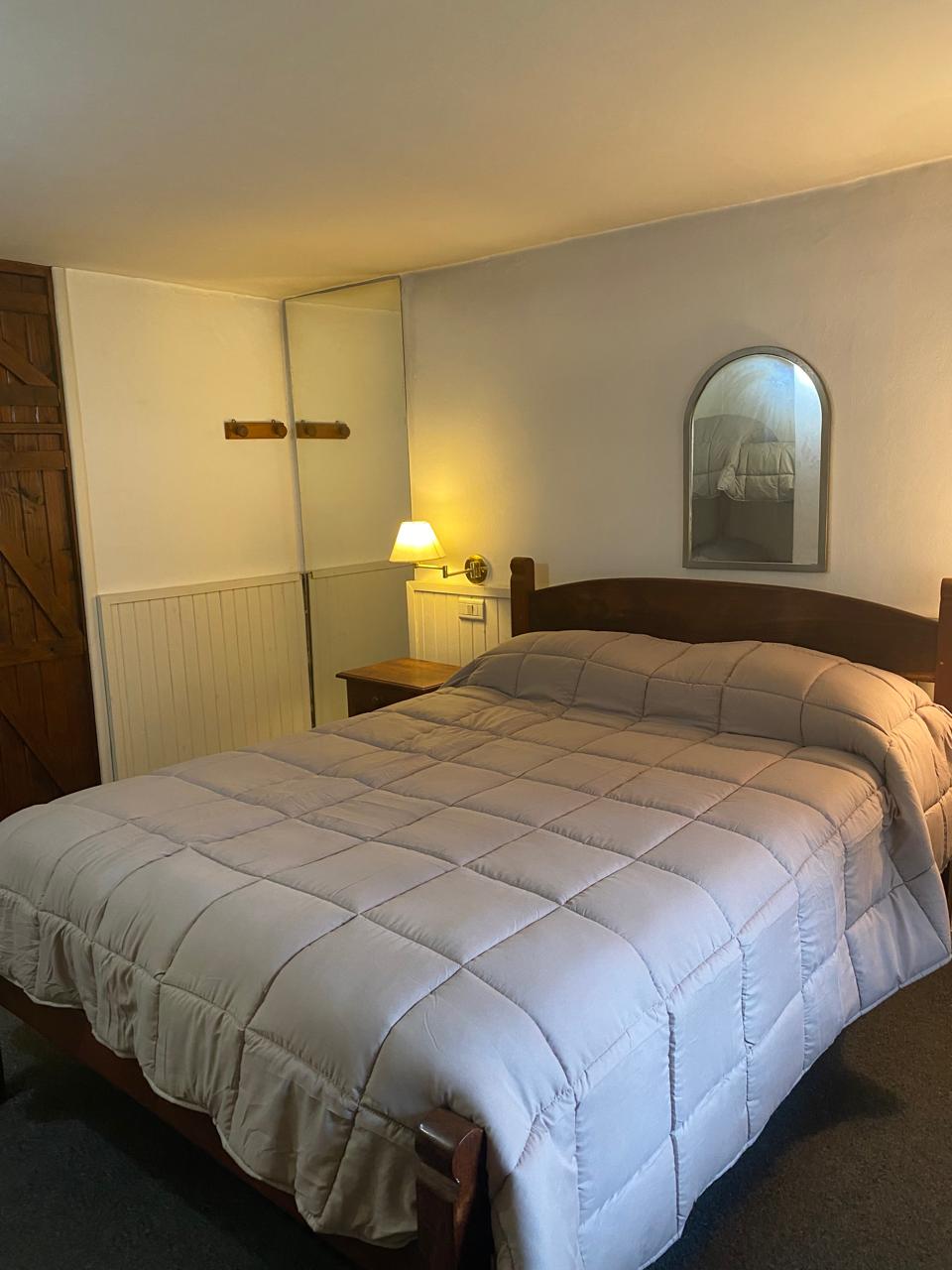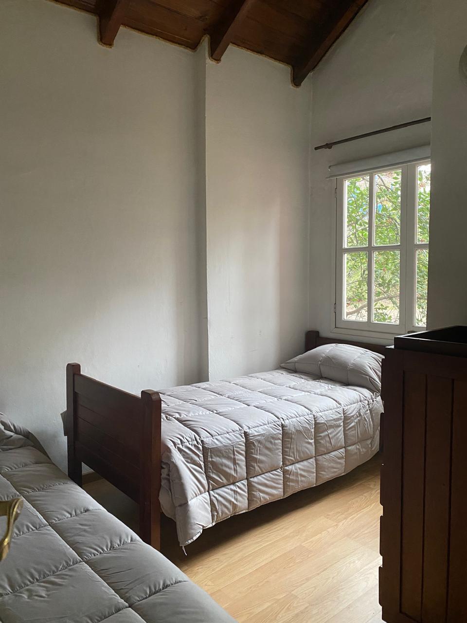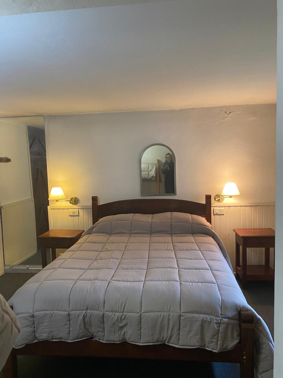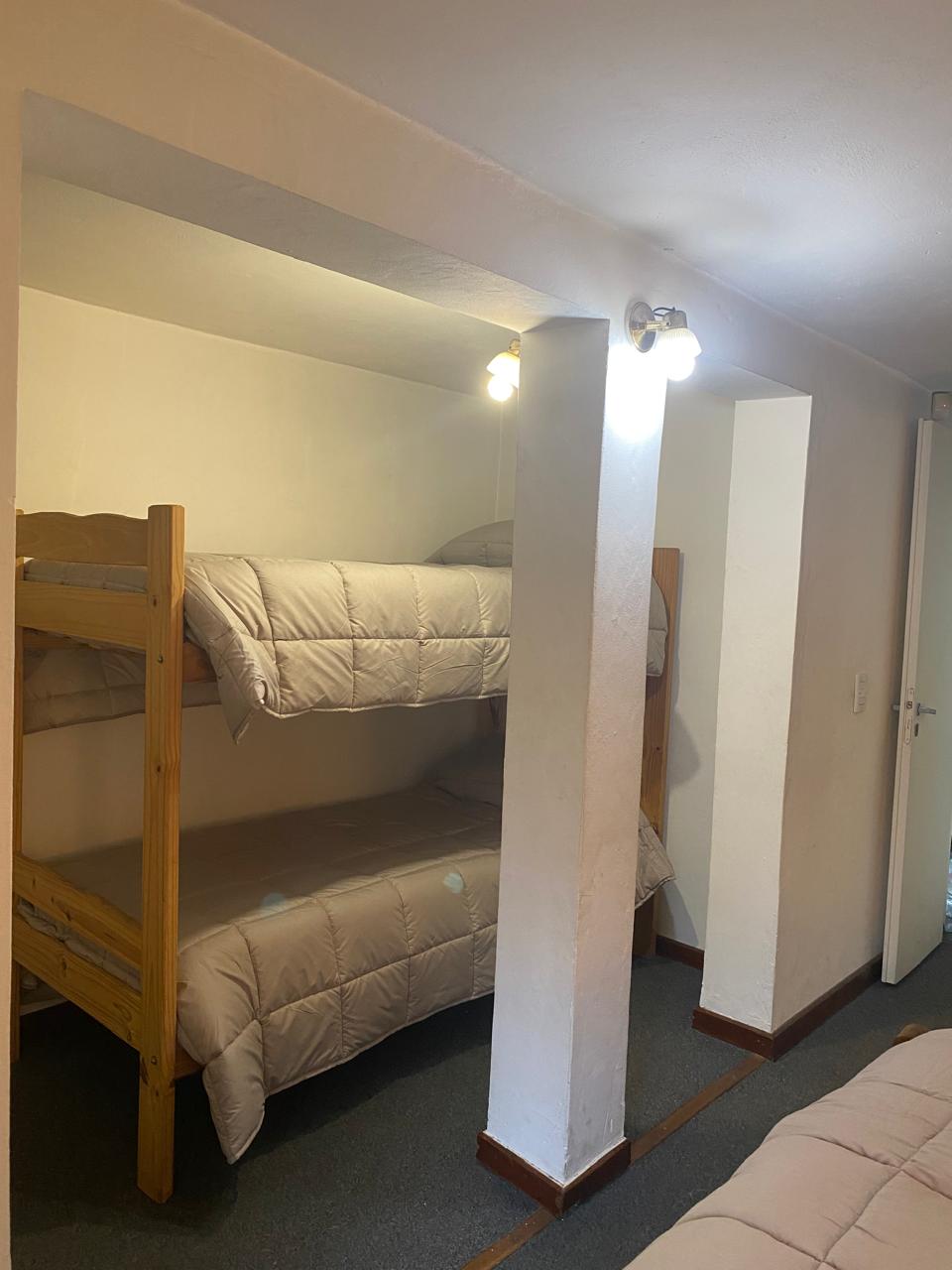 Dormitorio con cama matrimonial y dos cuchetas con baño completo