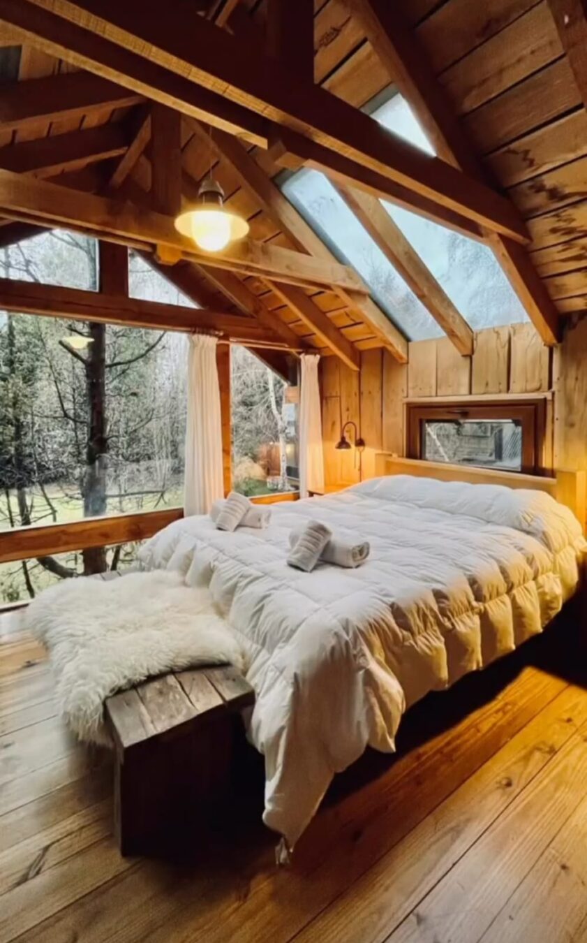 Ofrece a los huéspedes el perfecto balance entre naturaleza y comodidad. Con acabados de lujo, totalmente equipada. Cuenta con un enorme parque, 2 chimeneas en el interior, living y comedor de gran tamaño, 2 habitaciones, 1 loft y sofá cama adicional para 2 personas.