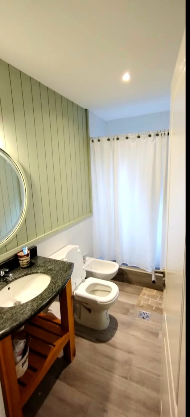 Baño general: completo con ducha con cortina y pared de 20 cm en ducha para usar como bañadera de niños eventual