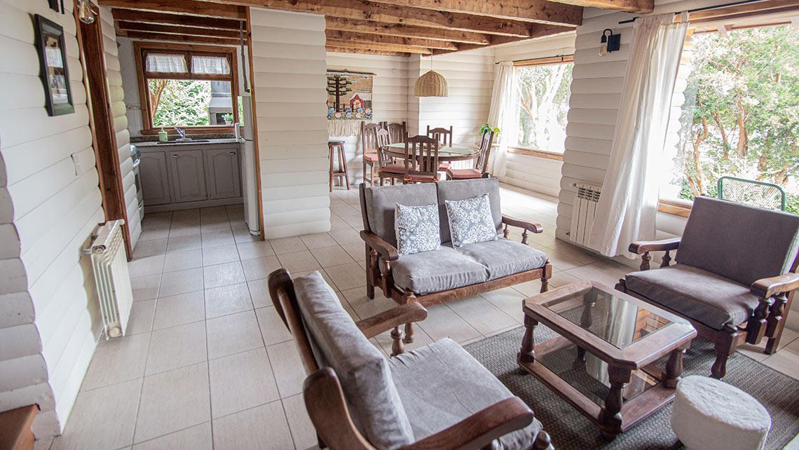 PLANTA BAJA: Living-comedor con chimenea y smart TV, cocina completa, toilette.