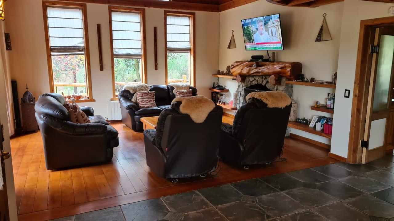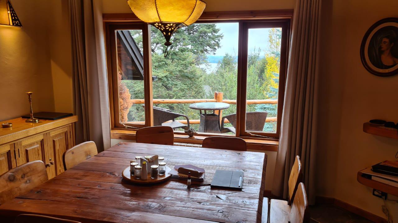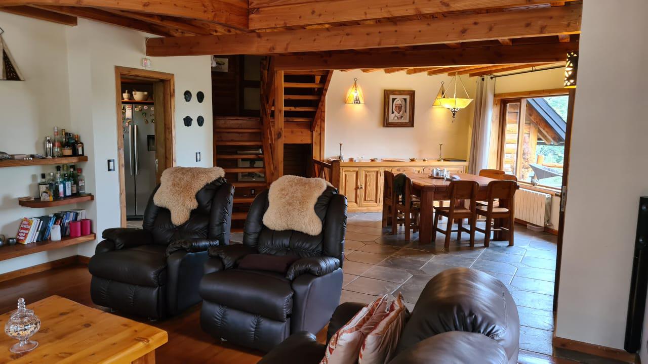 Importante casa de 297 m2 sobre dos lotes que suman 2582 m2 en total. La casa se encuentra ubicada sobre la calle y el lote tiene pendiente hacia el fondo donde limita con un arroyo de buen caudal durante todo el año. Cuenta con vistas abiertas a la cordillera y parcial al Lago Nahuel Huapi. Tiene 3 dormitorios, uno de ellos en suite con vestidor, escritorio, dos baños completos, toilette, living con hogar a leña, comedor, cocina, despensa, lavadero y amplio quincho con parrilla. Calefacción central por radiadores. Ubicada sobre la calle traful del barrio Epulafquen, a solo dos cuadras de la Ruta 40.