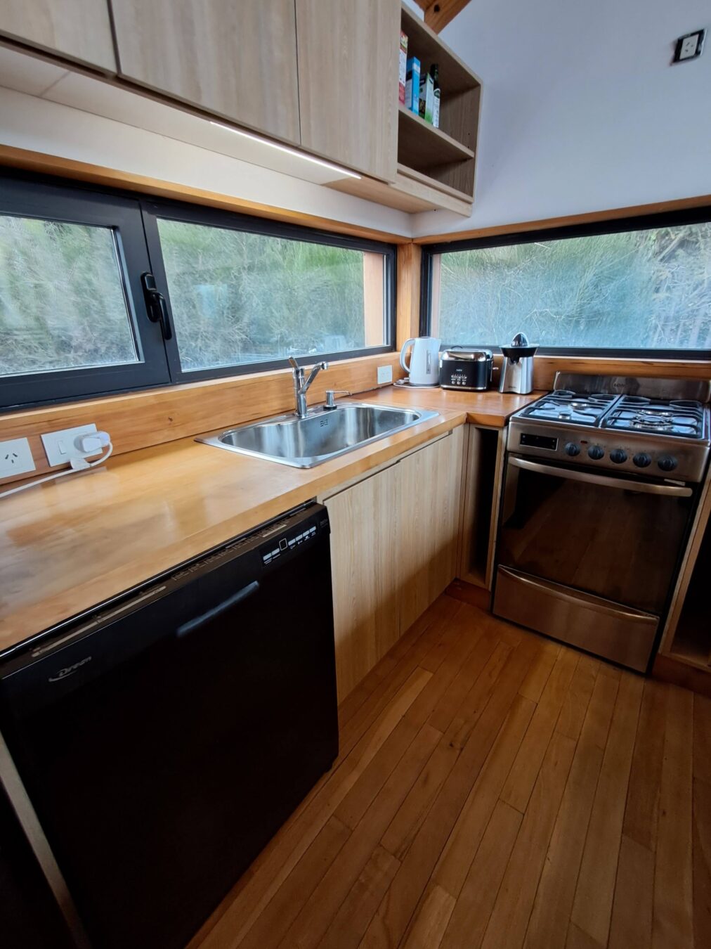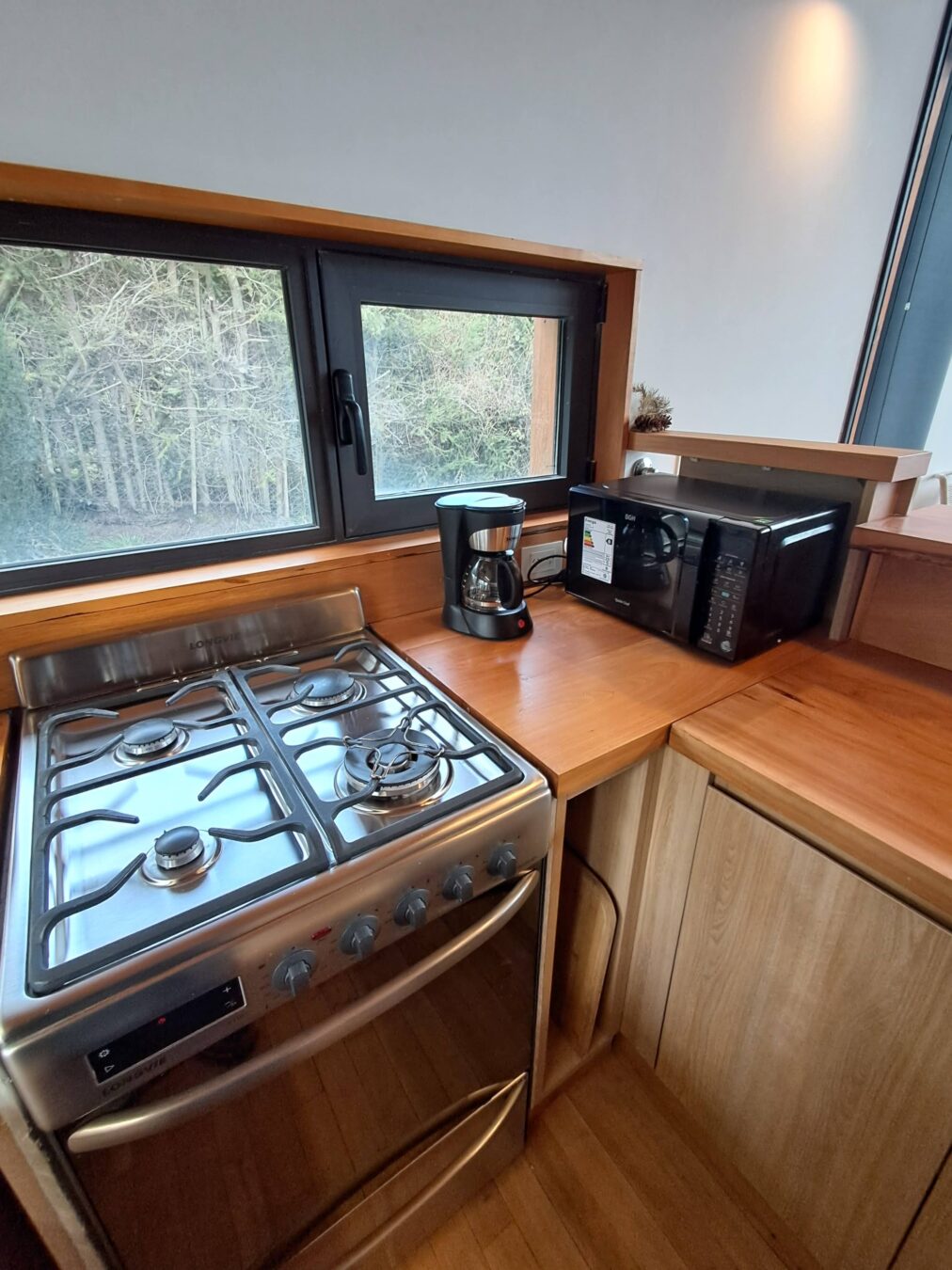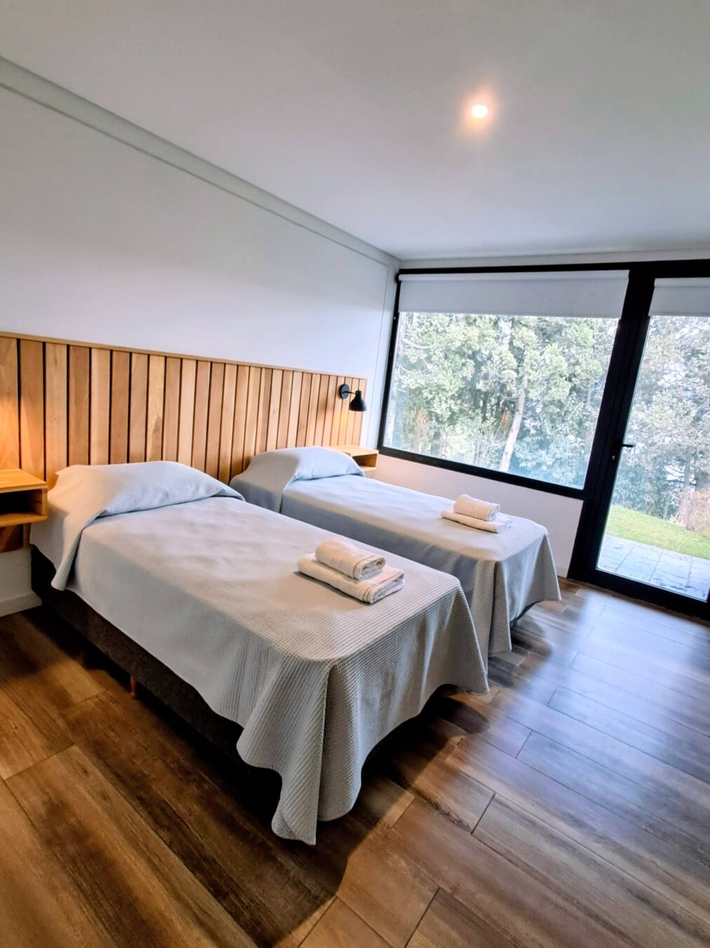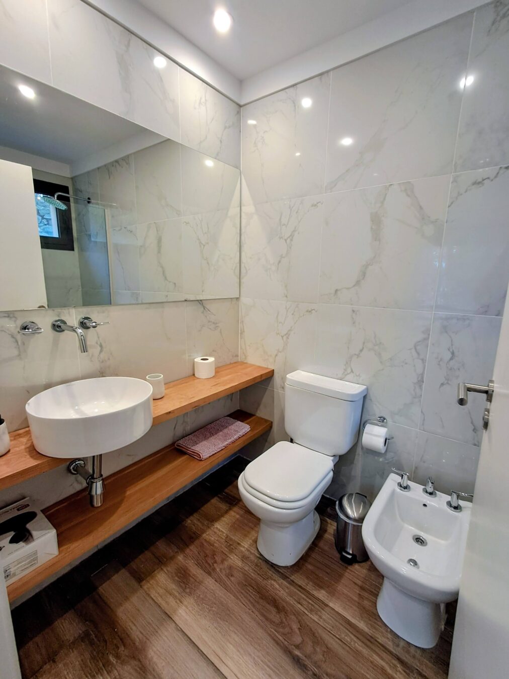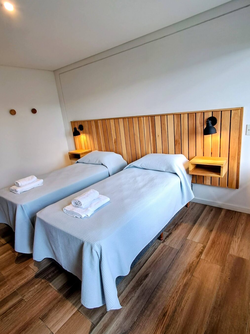 Cuenta con 2 dormitorios, uno con cama matrimonial y otro con 2 camas individuales. Además hay un sillón cama donde entran 2 personas más. 2 baños completos.