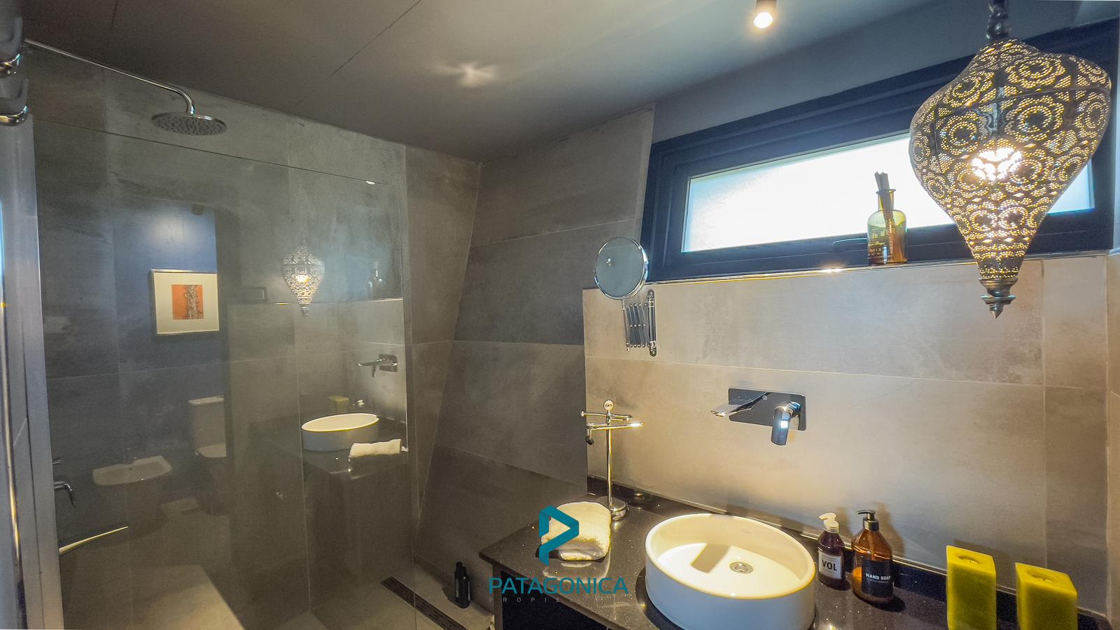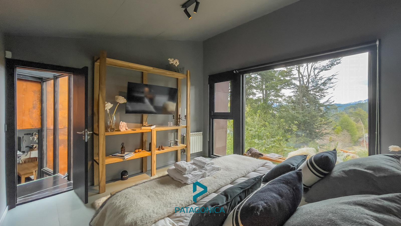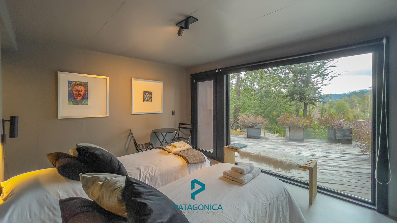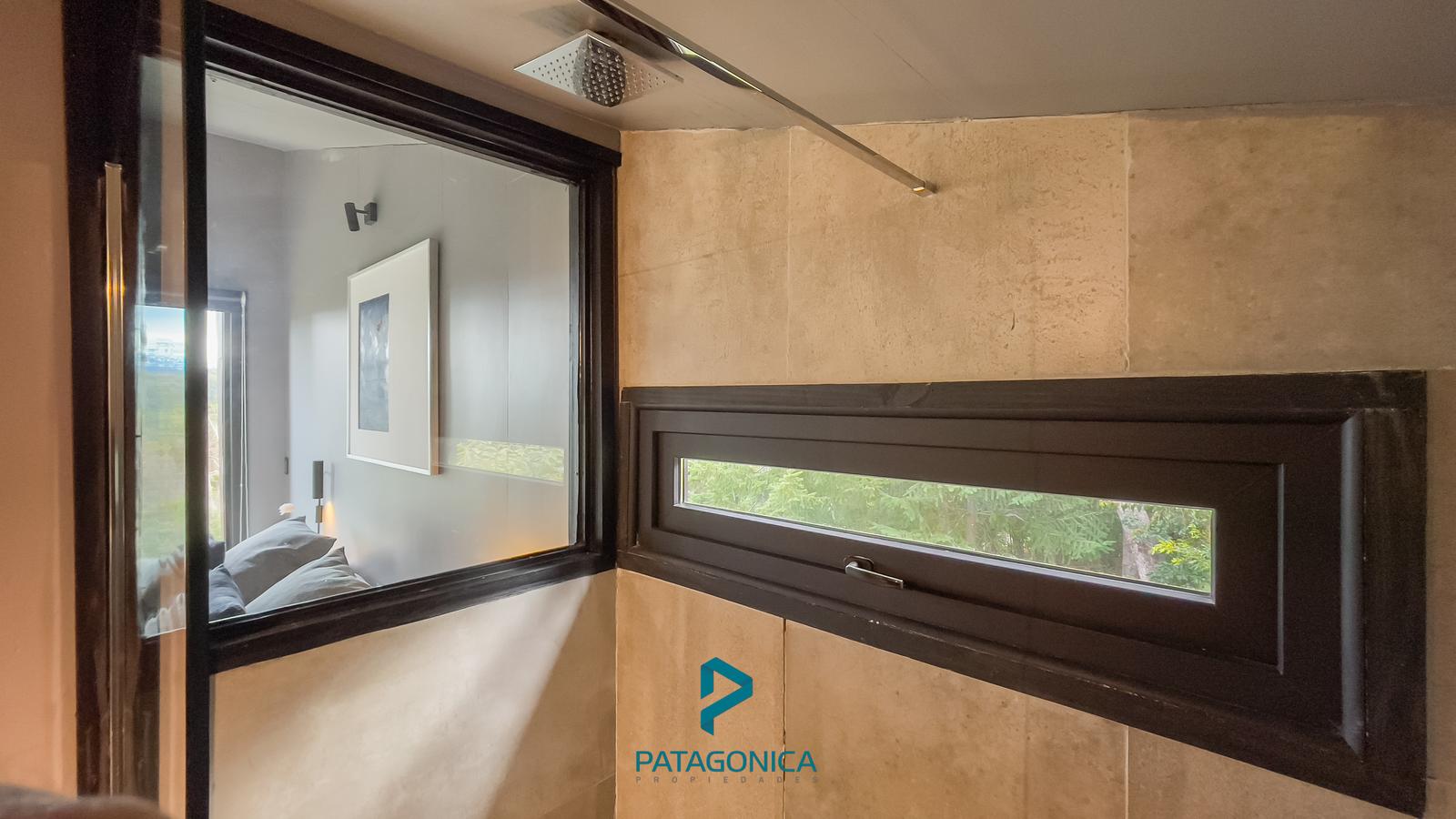 Atravesando el pasillo vidriado nos encontramos con dos dormitorios en suite, uno de ellos cuenta con salida a un deck privado. Ambos volumenes cuentan con calefaccion por loza radiante, salida a deck y la propiedad en general tiene parrilla y espacio destinado a guardado (baulera)