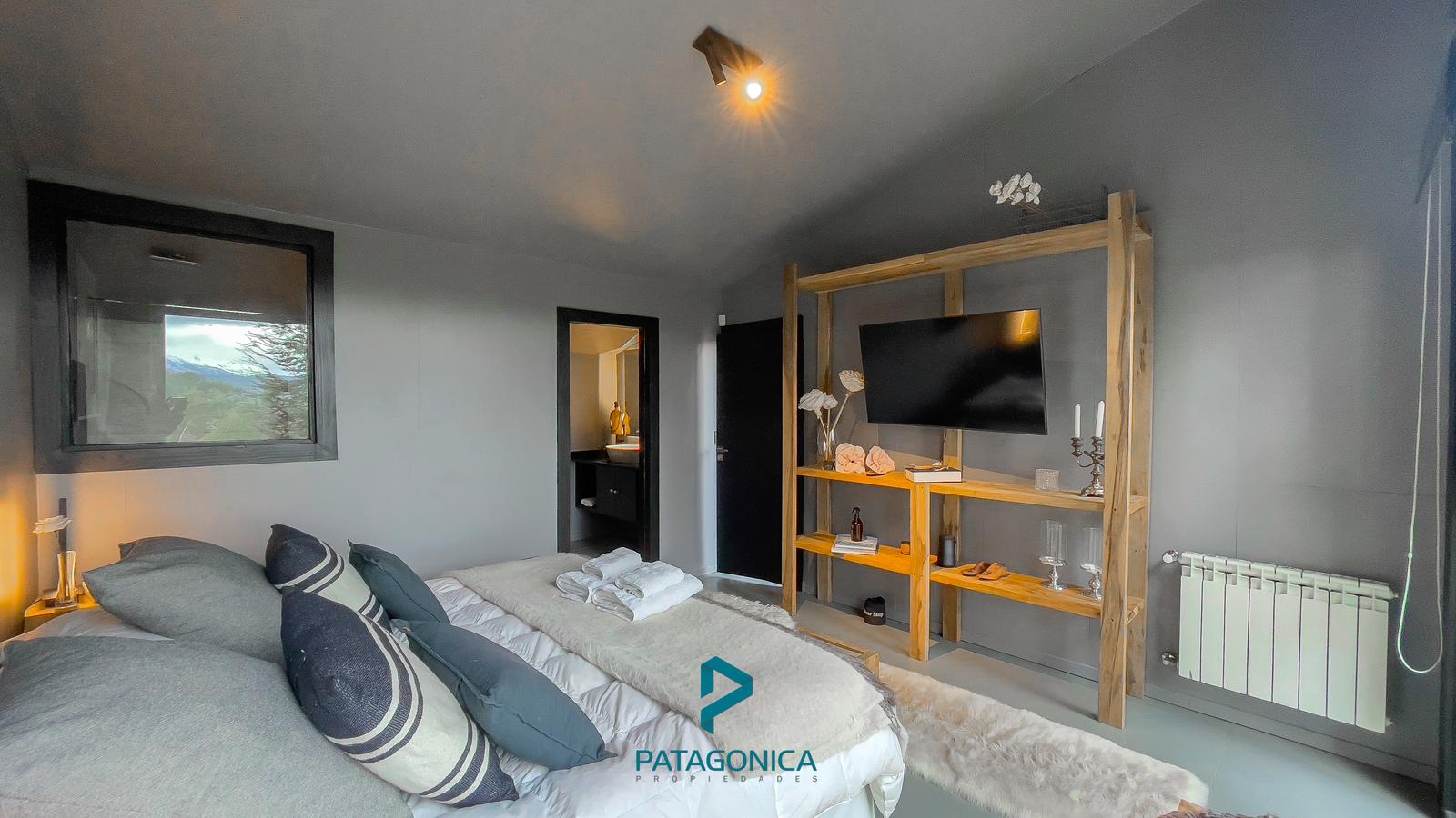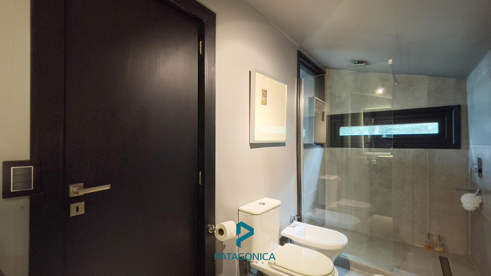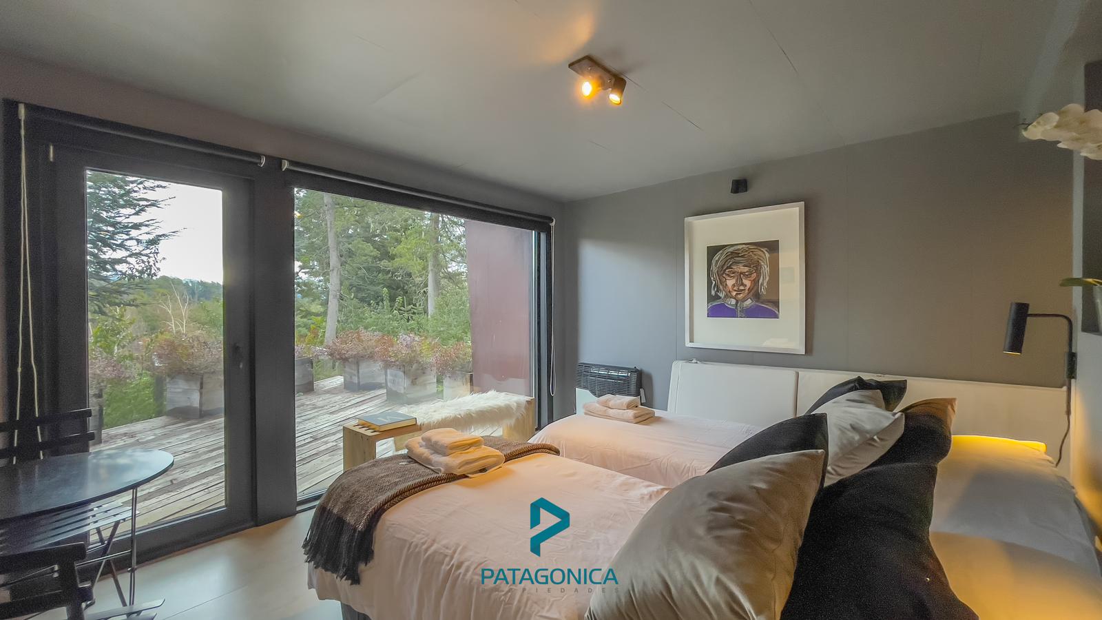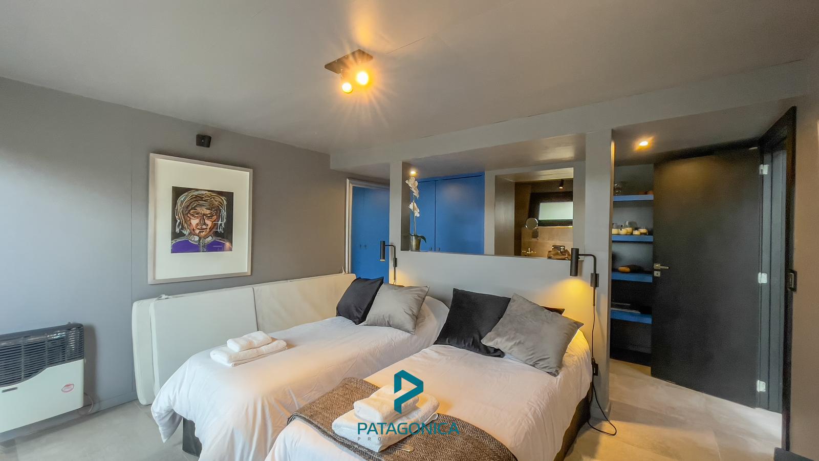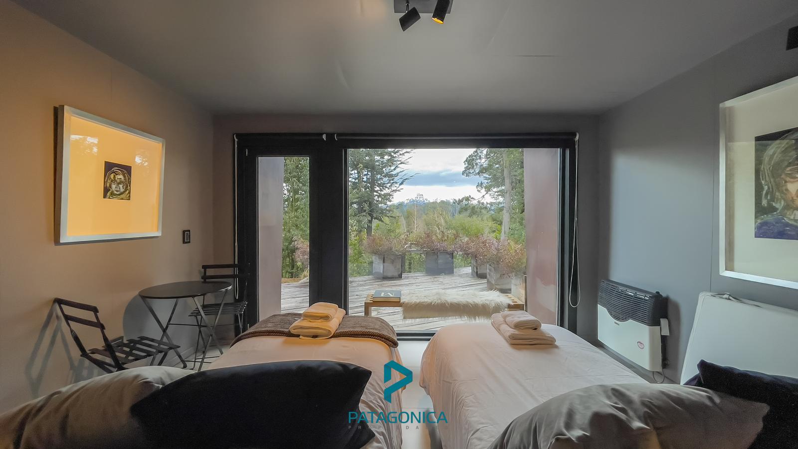Atravesando el pasillo vidriado nos encontramos con dos dormitorios en suite, uno de ellos cuenta con salida a un deck privado. Ambos volumenes cuentan con calefaccion por loza radiante, salida a deck y la propiedad en general tiene parrilla y espacio destinado a guardado (baulera)