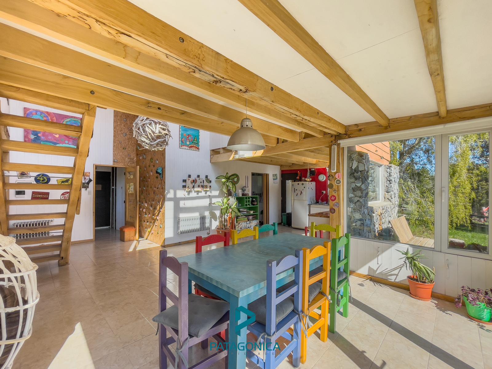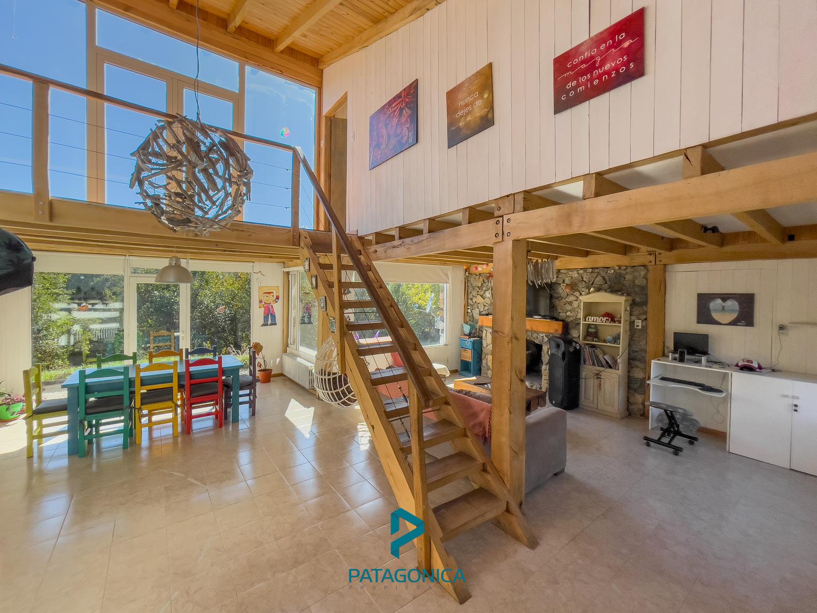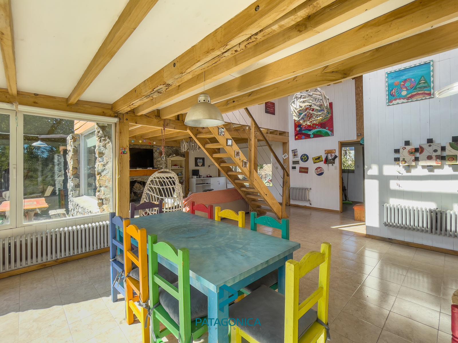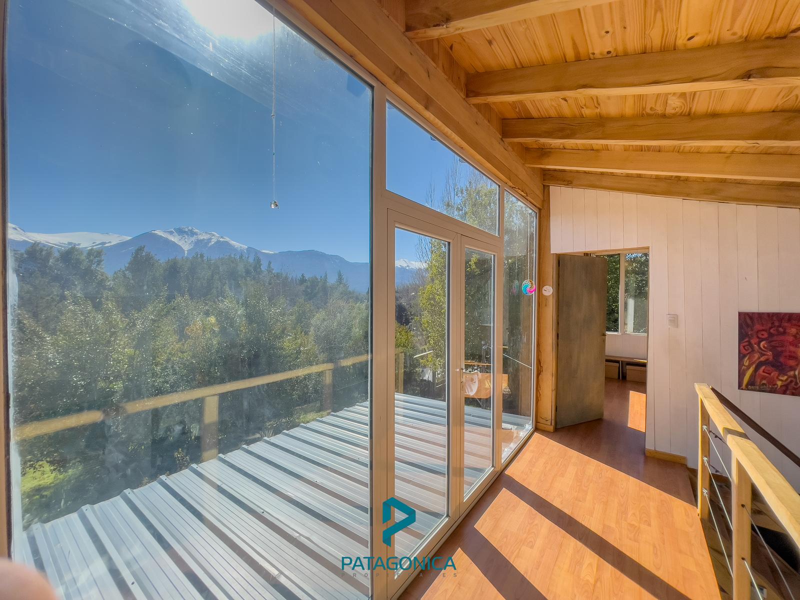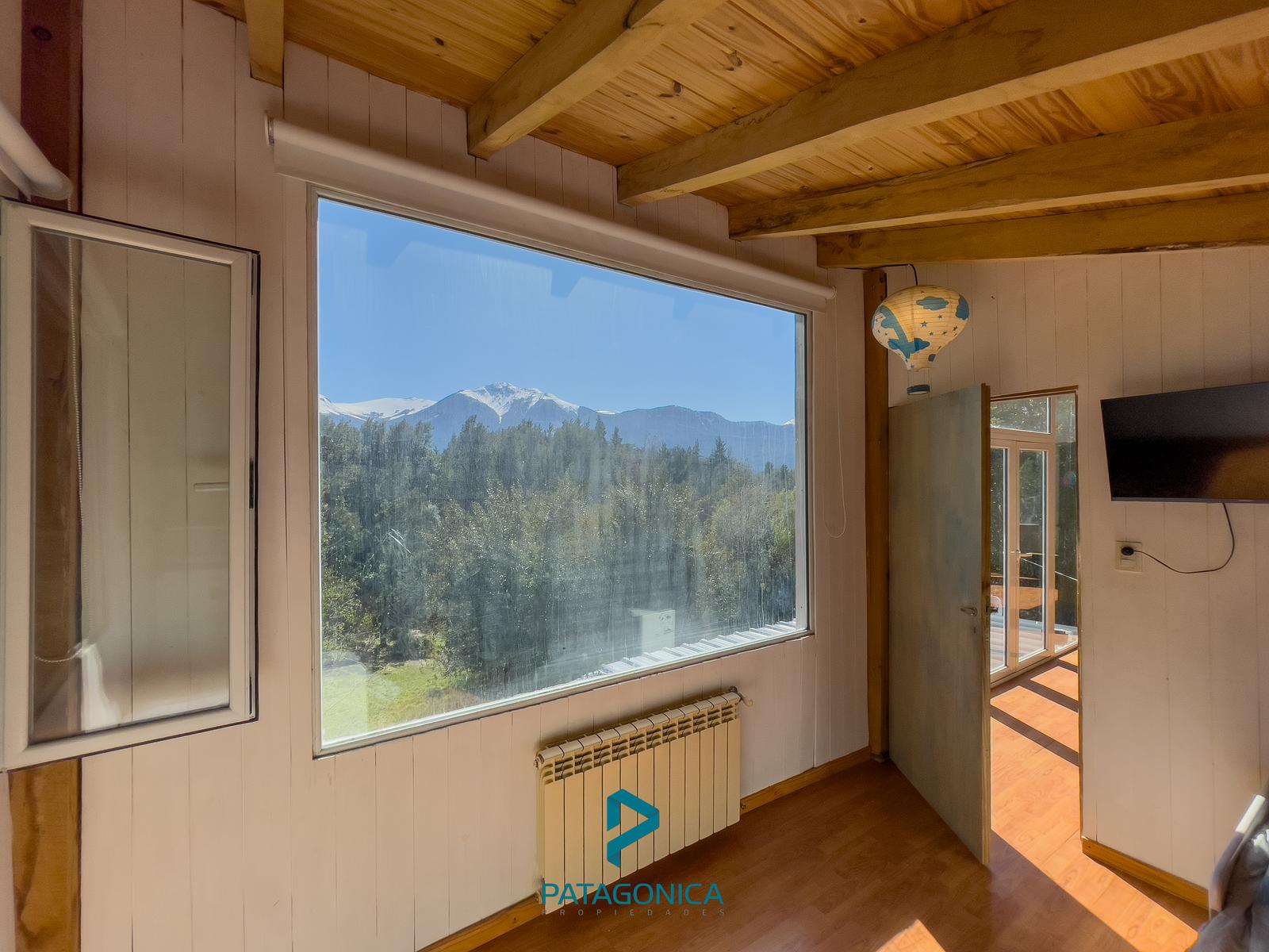 Living: El living es un espacio cálido y luminoso que cuenta con grandes ventanales que permiten disfrutar de las vistas hacia los cerros. Además, está equipado con un hogar a leña, perfecto para calentar el ambiente durante los meses más fríos.