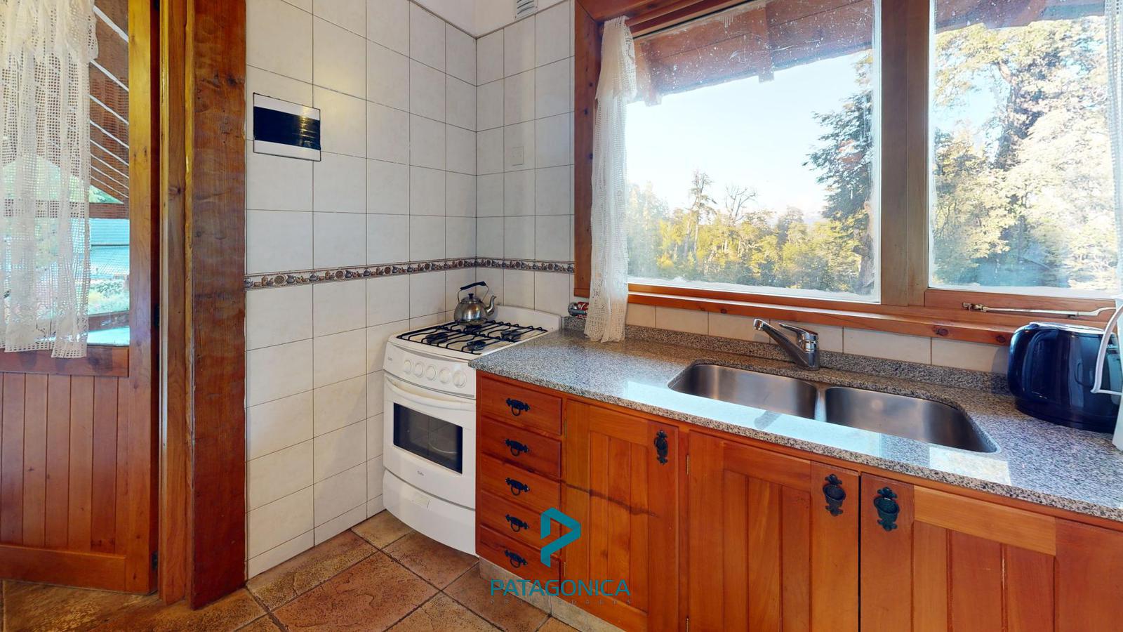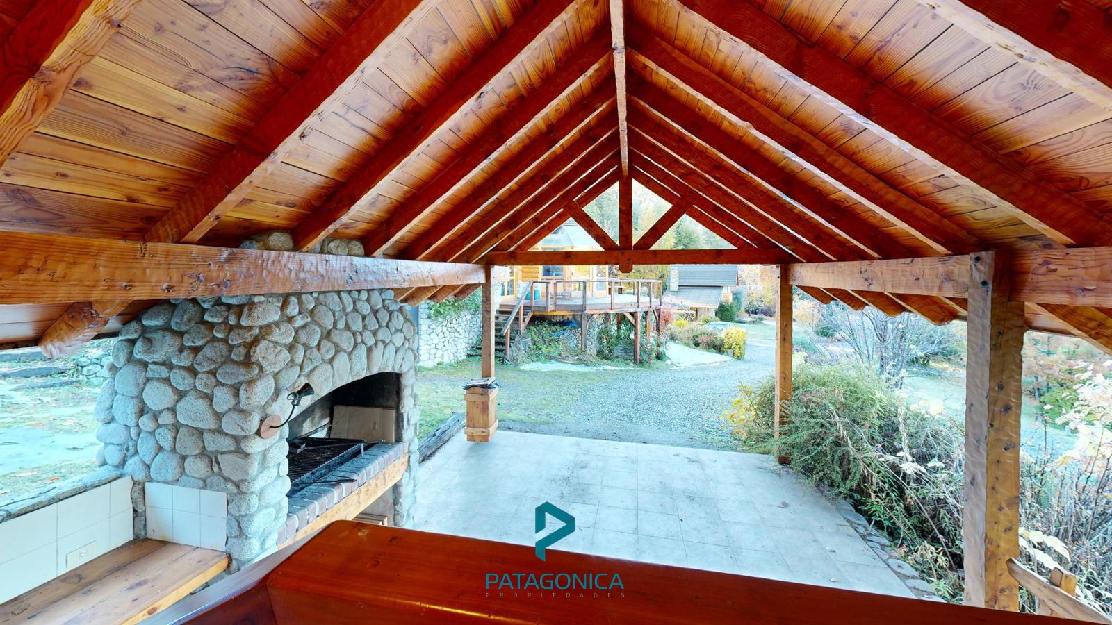 Cuenta con todos los servicios (gas, luz, agua, internet y telefono). Revestida en planta baja con piedra bocha y en planta alta con madera de Ciprés, las aberturas son de lenga con termopaneles (DVH), pisos de madera maciza, cantoneras de lenga achueladas a mano, hogar revestido en piedra bocha, techo inclinado con chapas onduladas de color negro. Equipo electrógeno.