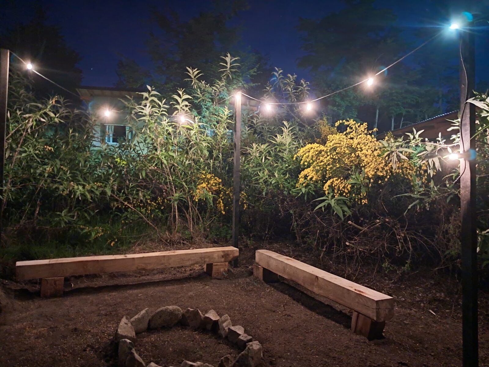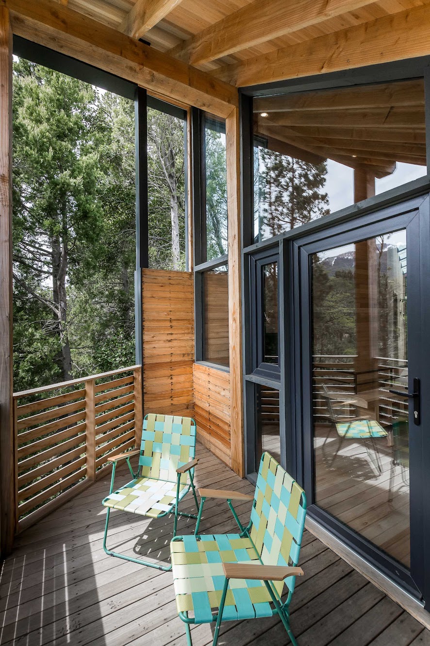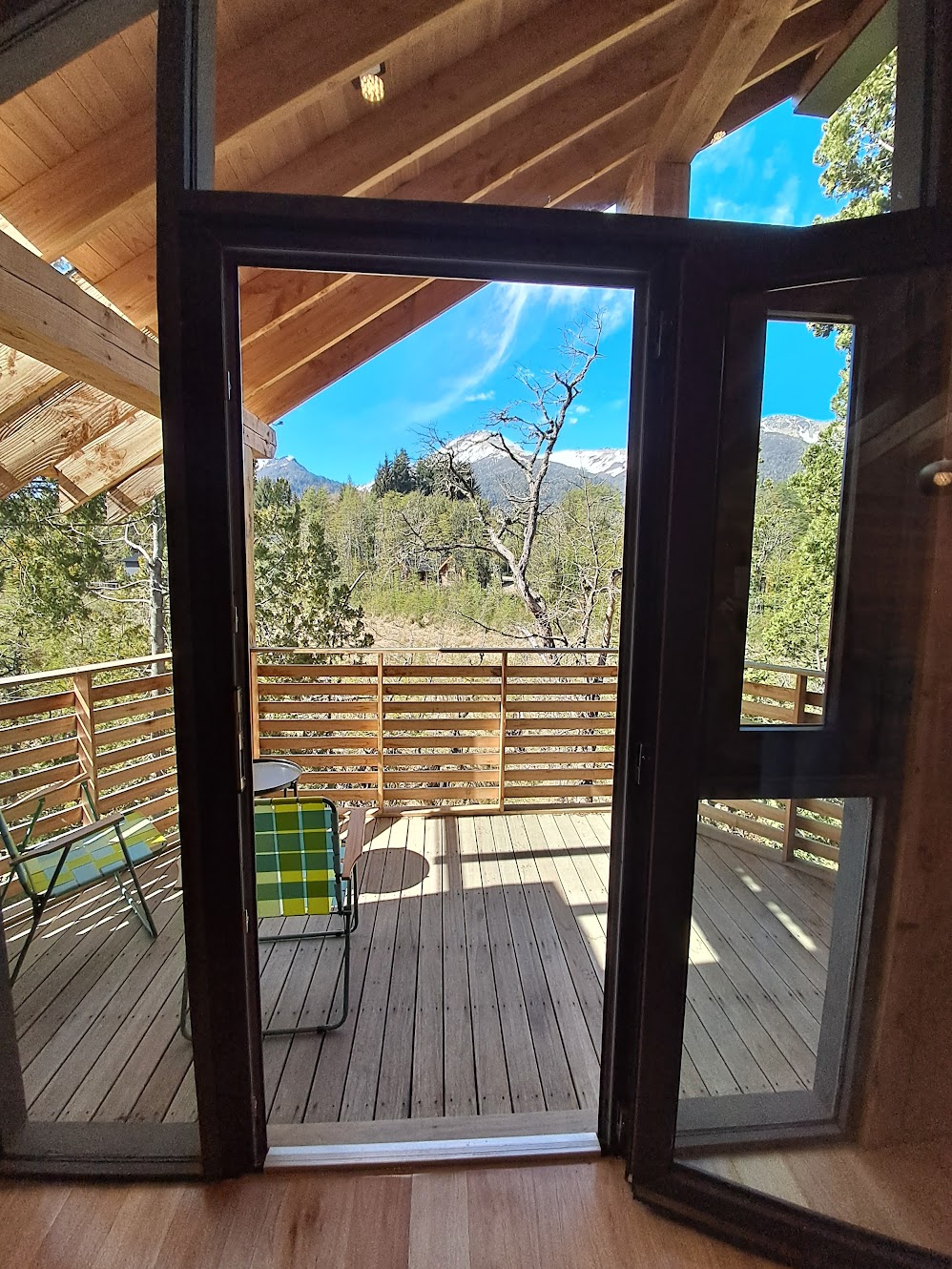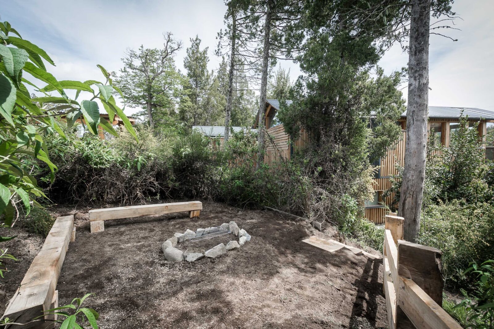Sector de jardín exterior con parrilla/ fogonero, bancos de madera. 2 balcones, uno en el living y otro en la habitación principal.
