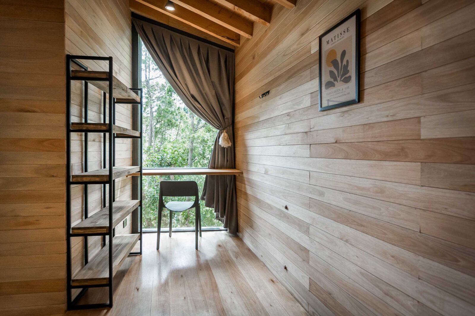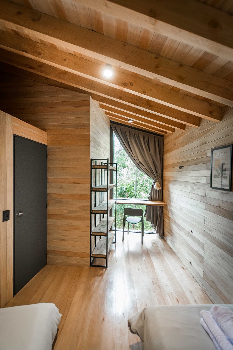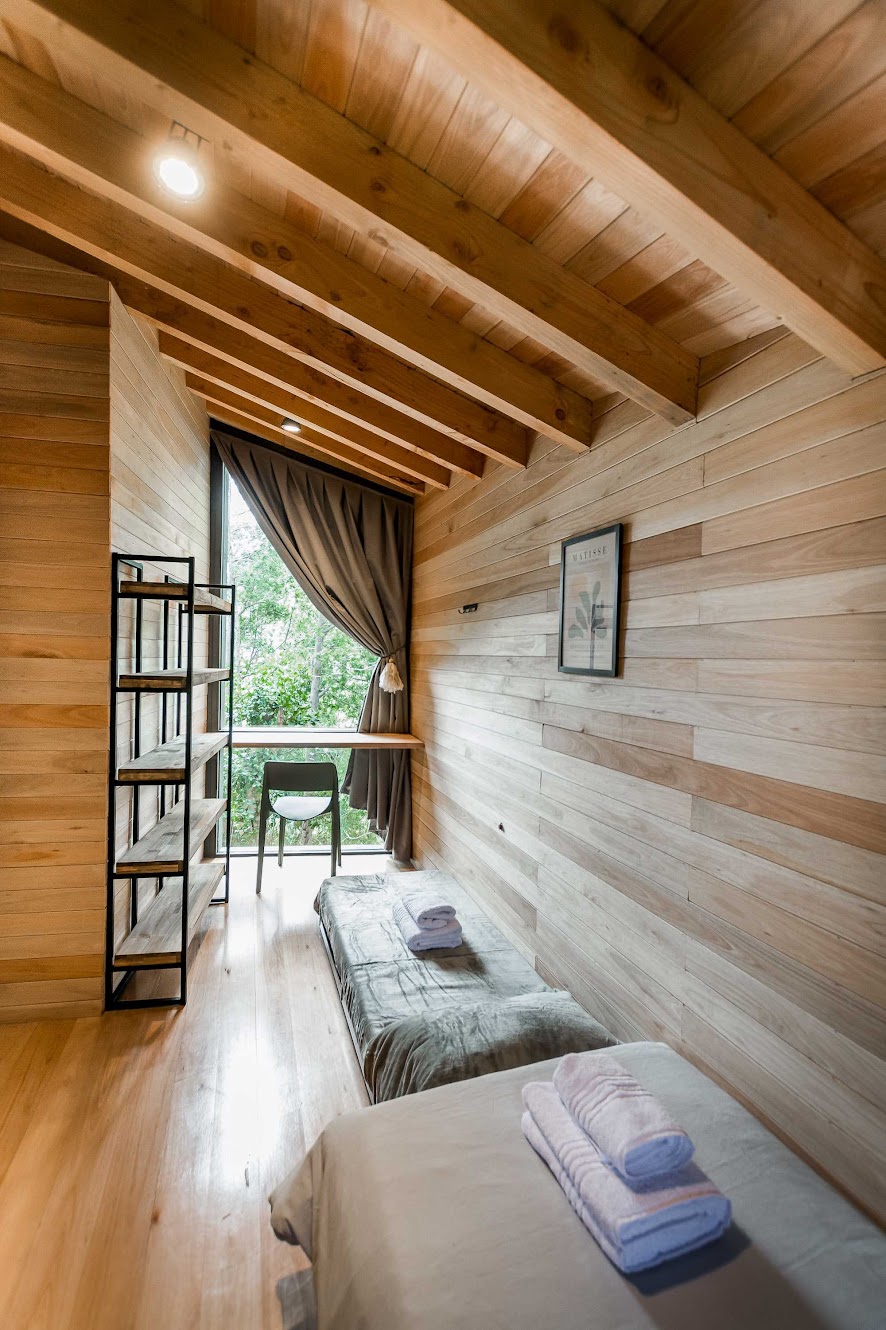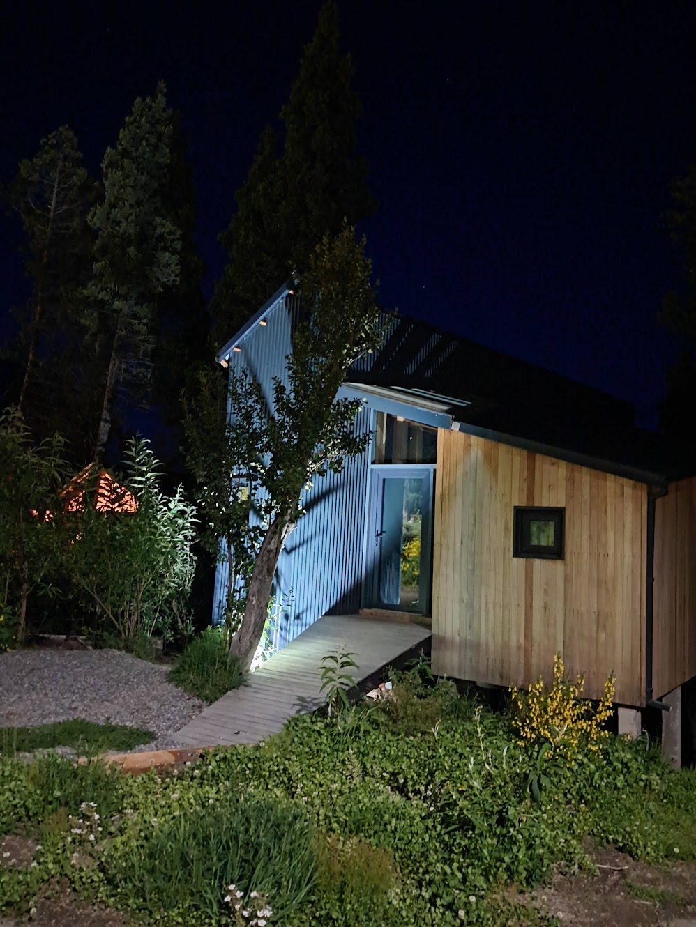 Sector de jardín exterior con parrilla/ fogonero, bancos de madera. 2 balcones, uno en el living y otro en la habitación principal.