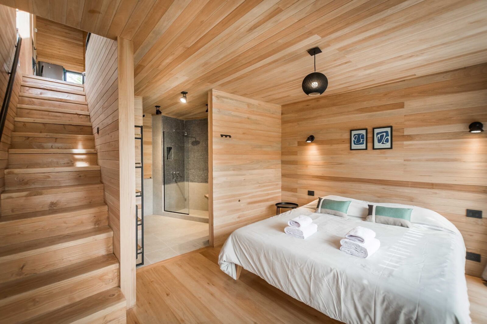 En la planta baja el dormitorio principal con cama king y un baño completo en suite.