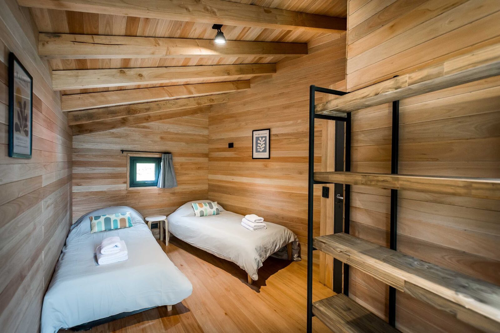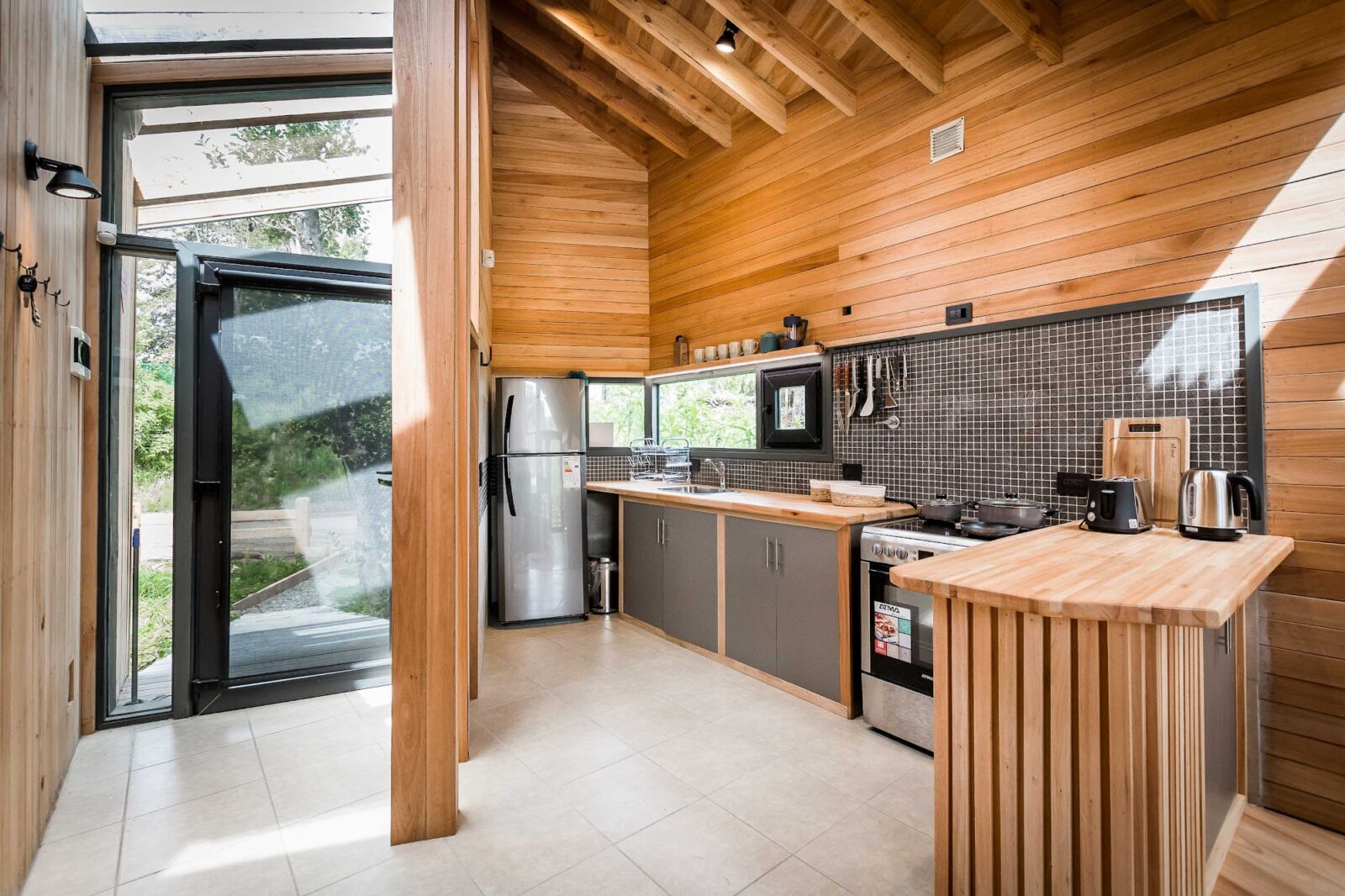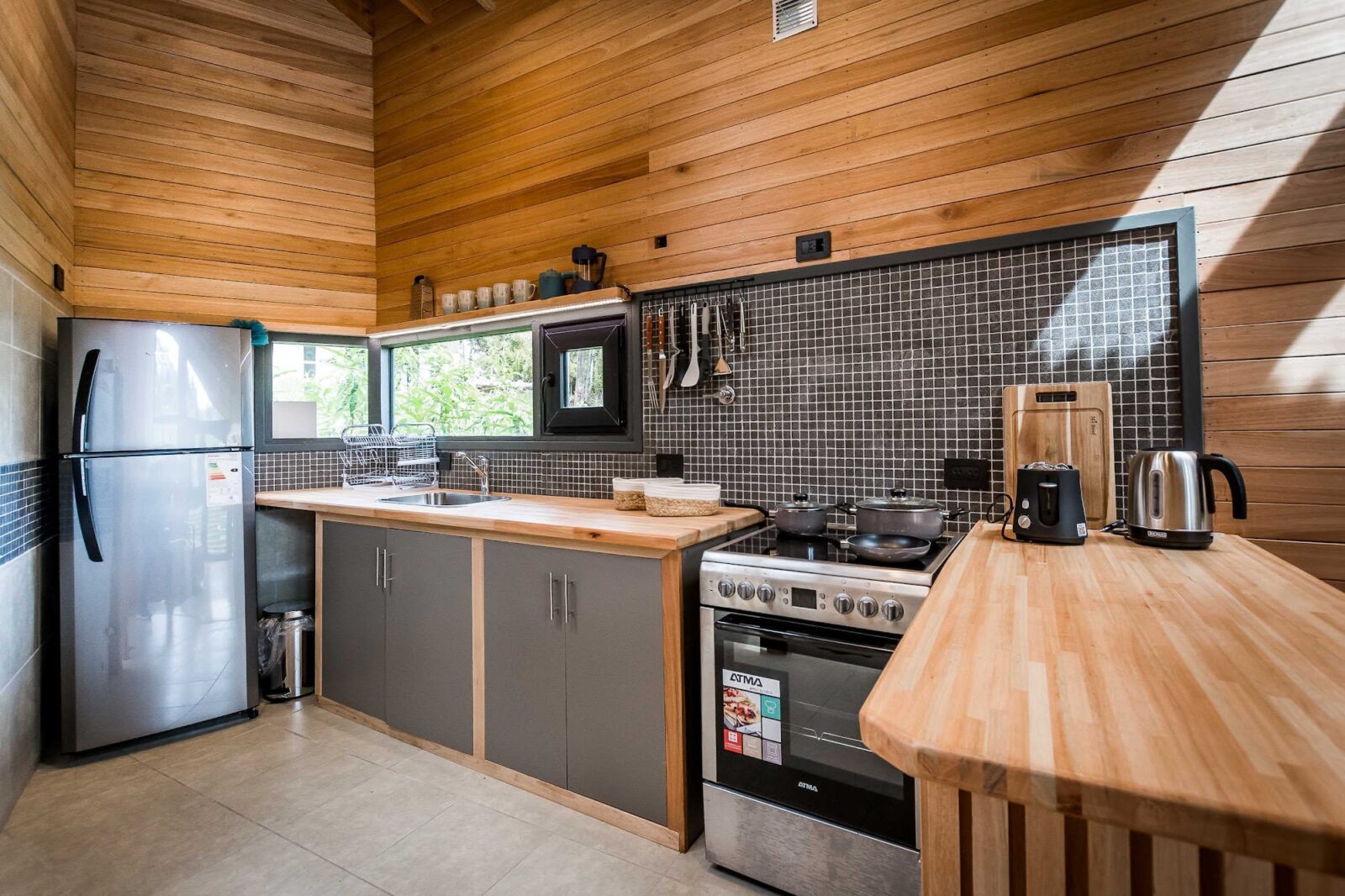 Cocina equipada con cafetera, tostadora, pava eléctrica y cocina con horno. Un baño completo y un dormitorio con 2 camas simples y una cama carro (apta para un menor).