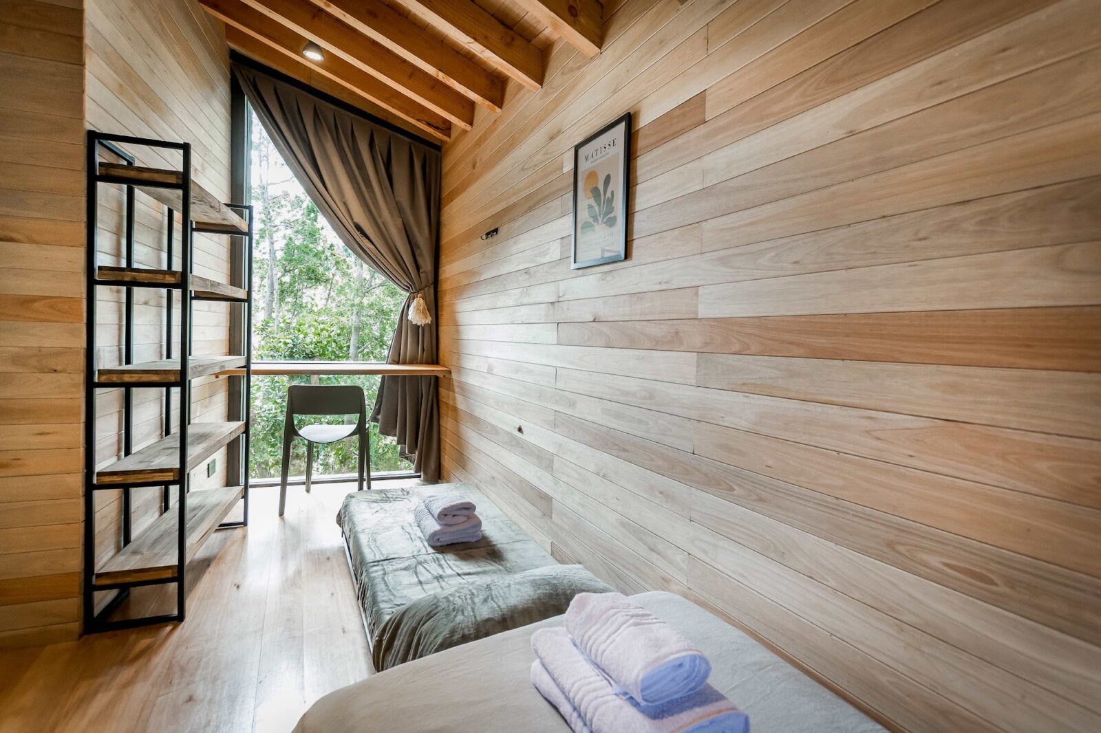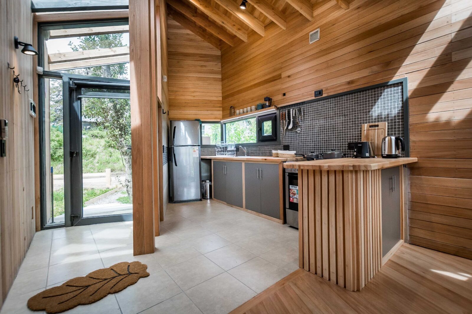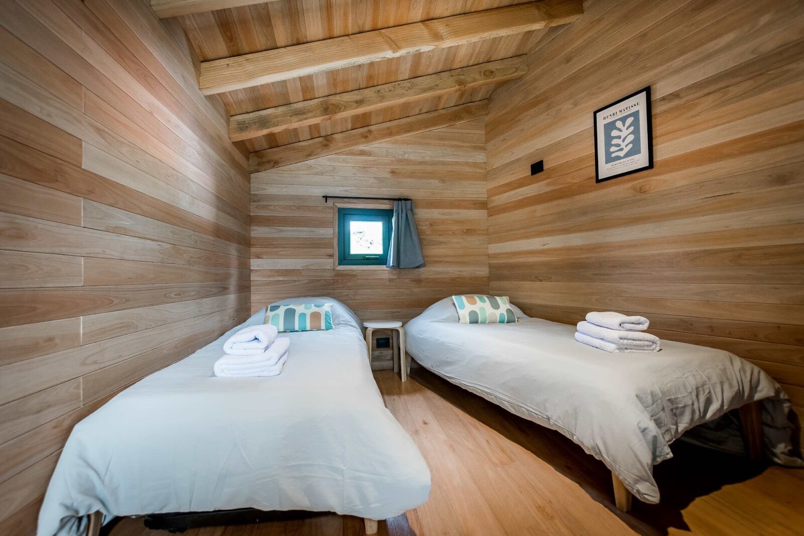 Cocina equipada con cafetera, tostadora, pava eléctrica y cocina con horno. Un baño completo y un dormitorio con 2 camas simples y una cama carro (apta para un menor).