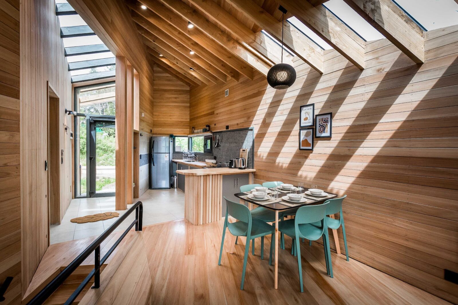 Rodeada de vegetación y con una amplia vista a las montañas se encuentra esta hermosa casa a estrenar, de diseño moderno y funcional. Es súper luminosa y espaciosa. Se accede a través de una rampa.